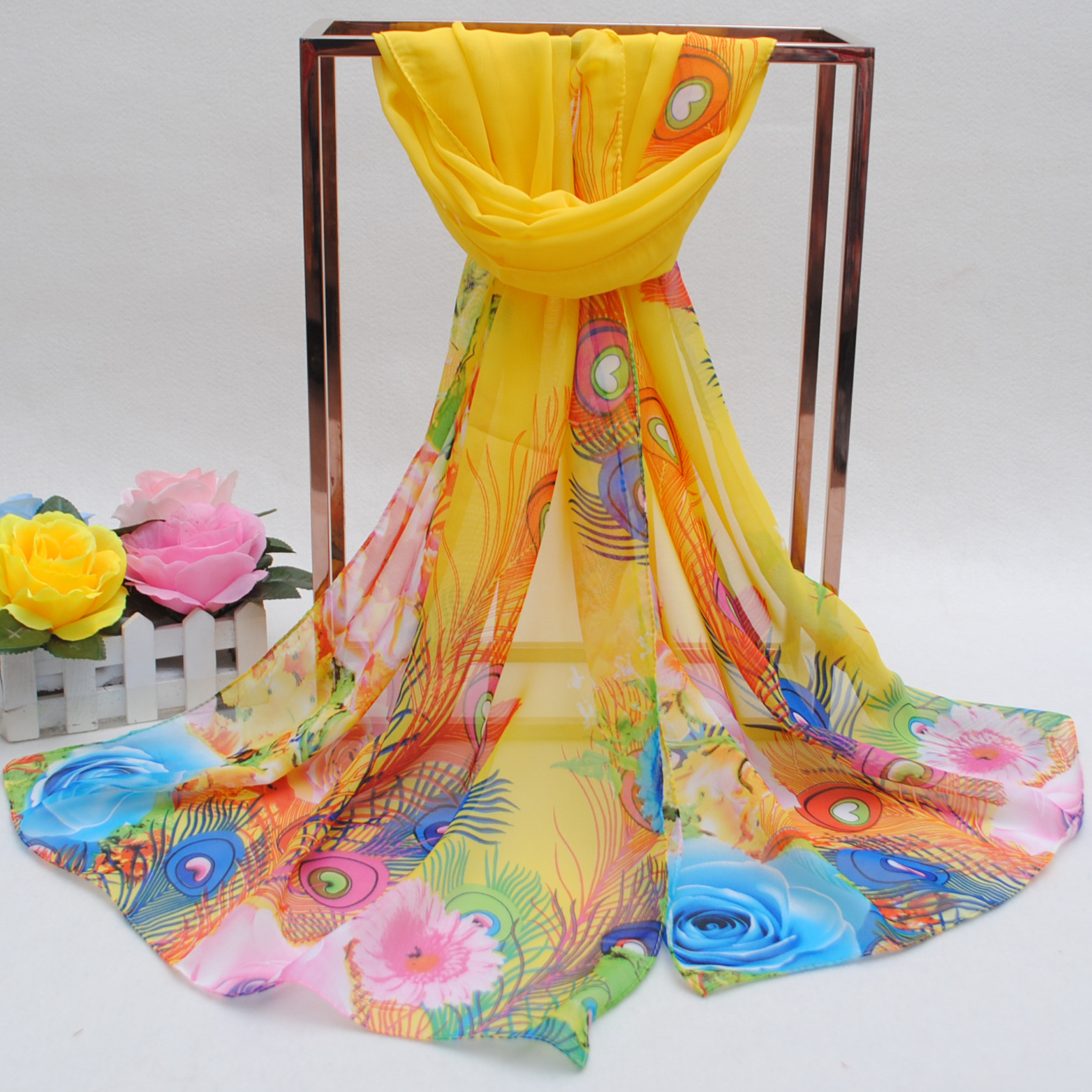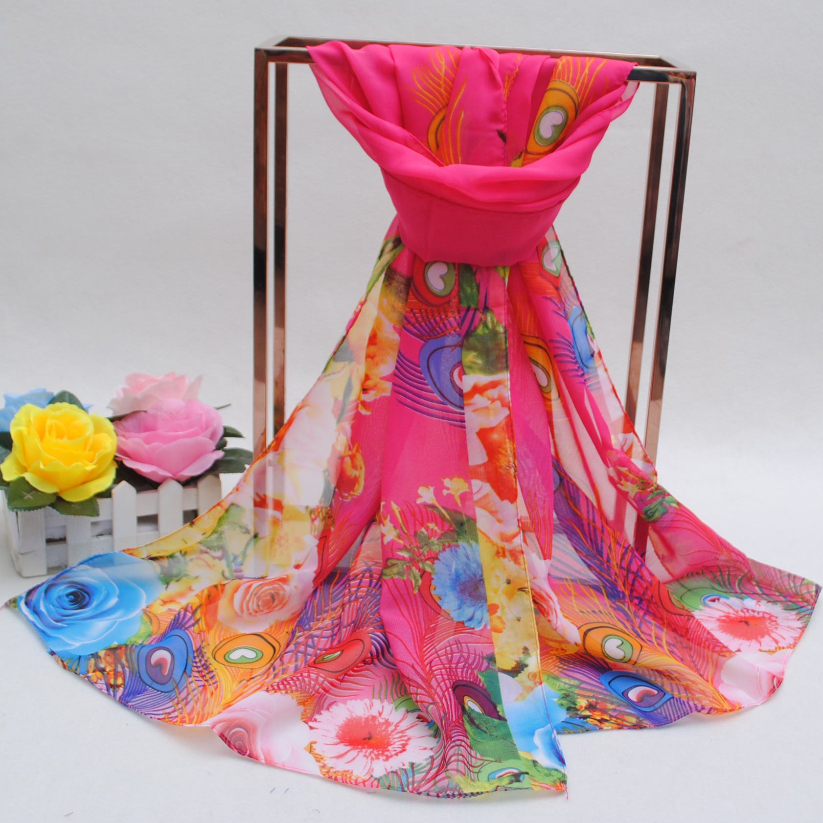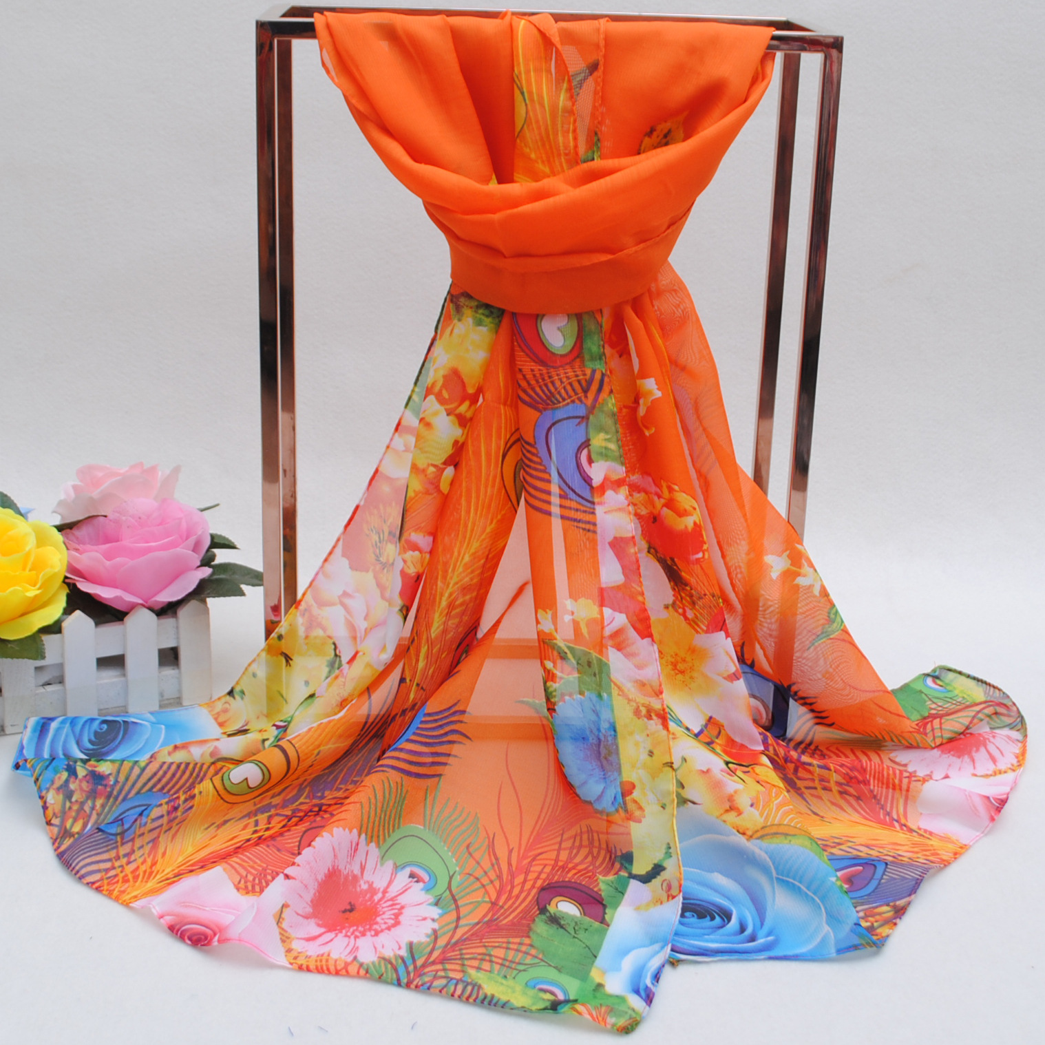 160 50cm Peacock Feather And Flowers Print Foral X277 Fashion Ladies Scarves Chiffon Scarf Womens Sh