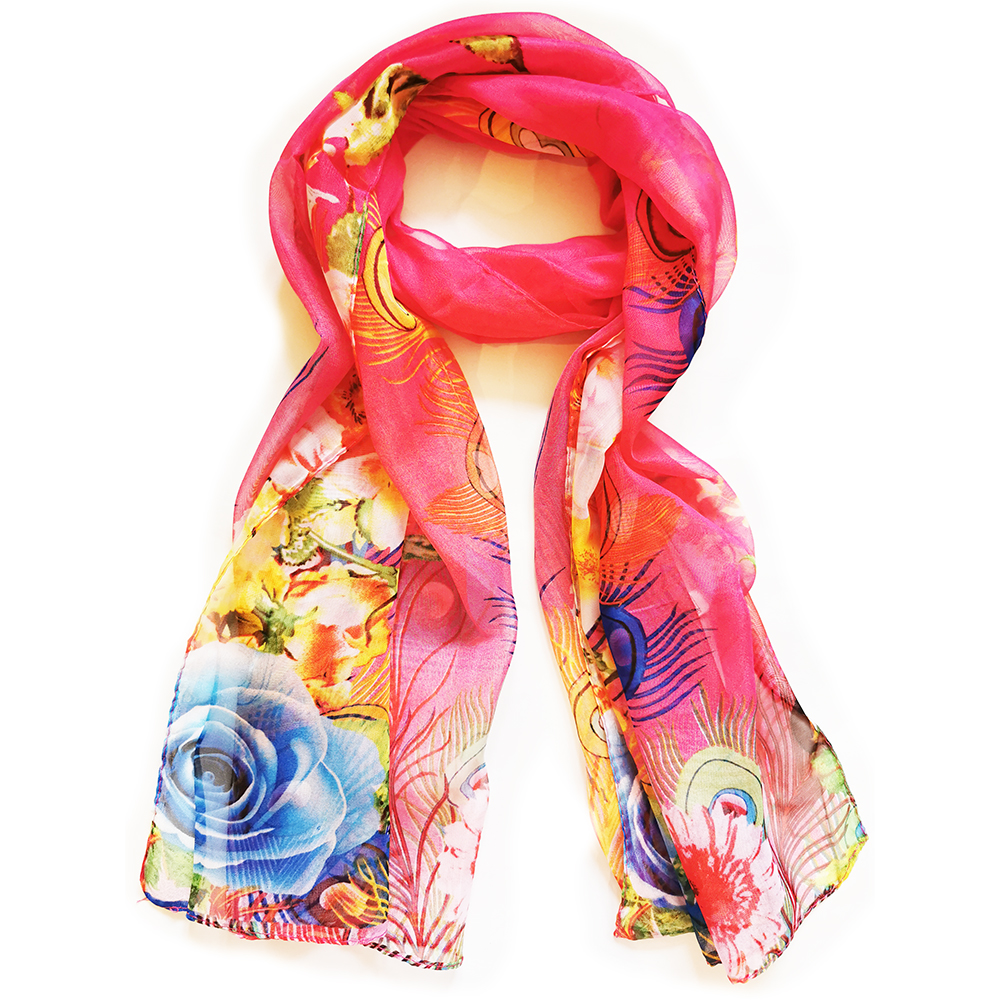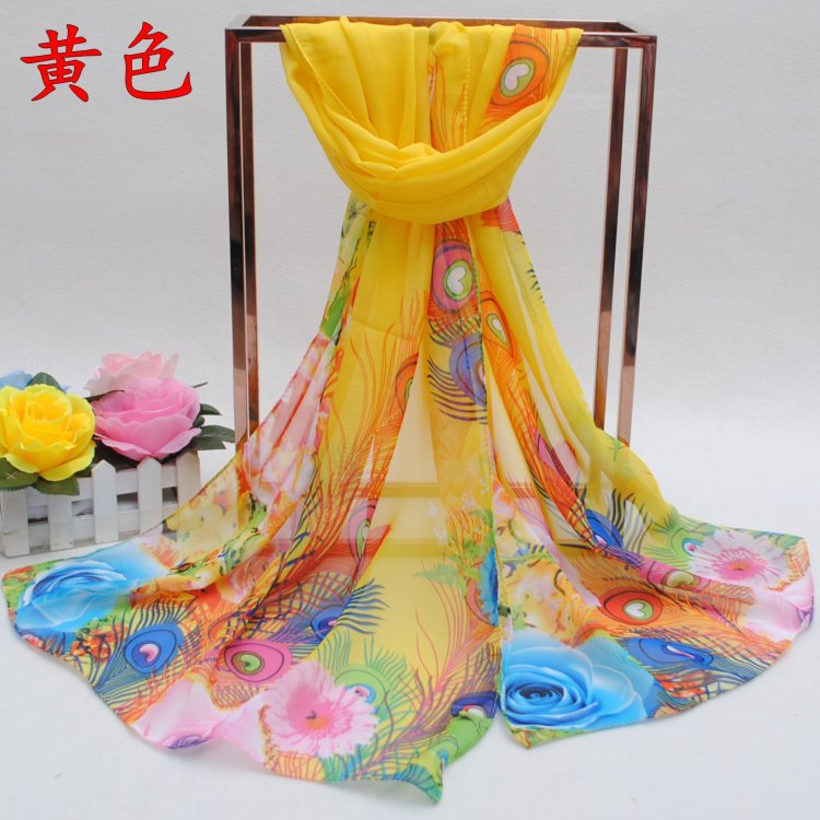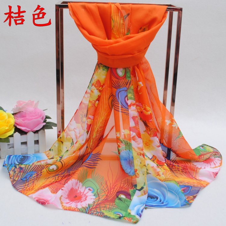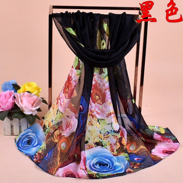 160 50cm Peacock Feather And Flowers Print Foral X277 Fashion Ladies Scarves Chiffon Scarf Womens Sh