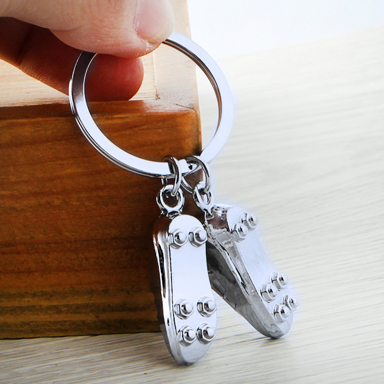 3D Football Shoes Boots Sneakers Pair Silver Keyring Football Fans Gift Xmas