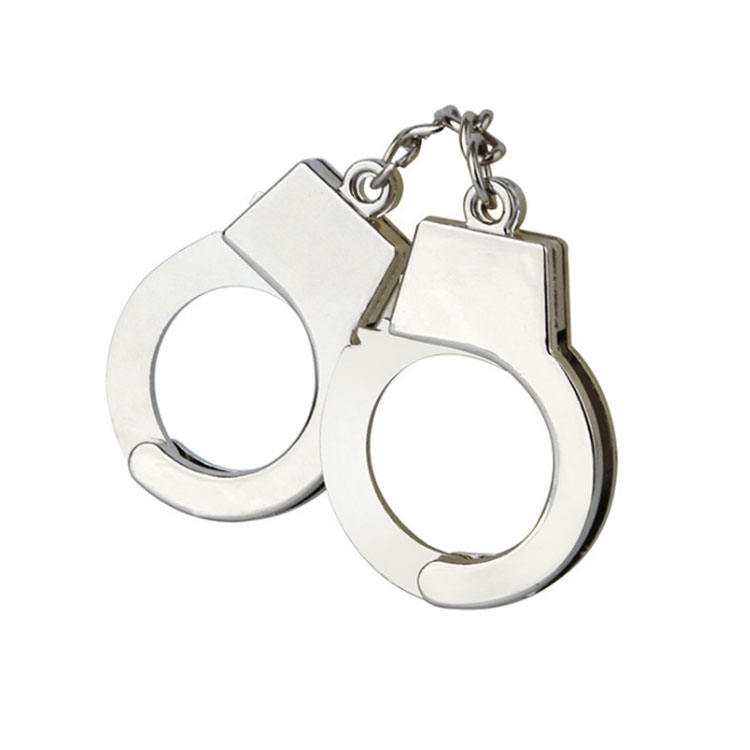 3D Silver Metal Functioning Mini Police Handcuffs Keyring Novelty Key Ring Gift
