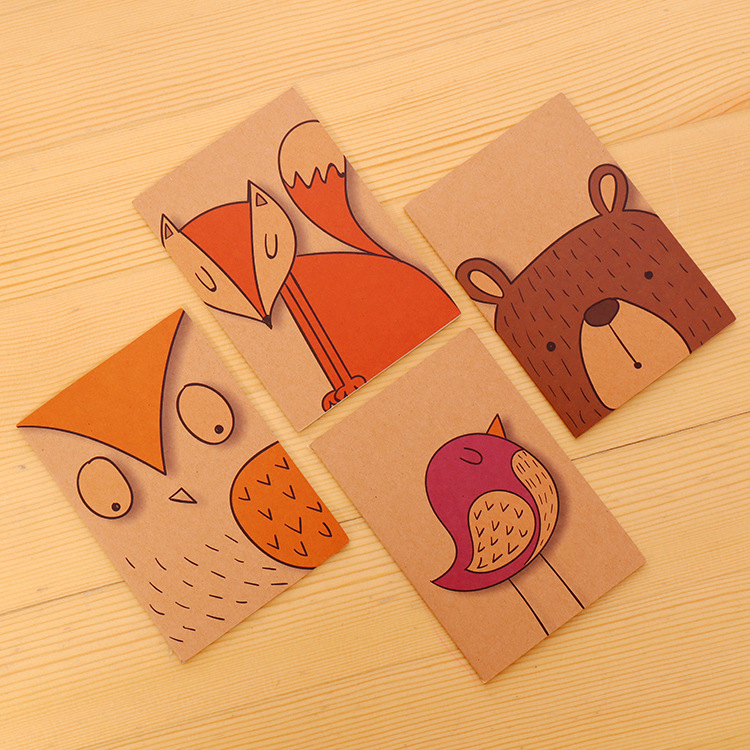 4pk Cute Animals Bear Bird Owl Fox Mini Notebooks Small Notepads Pocket Memo Pad