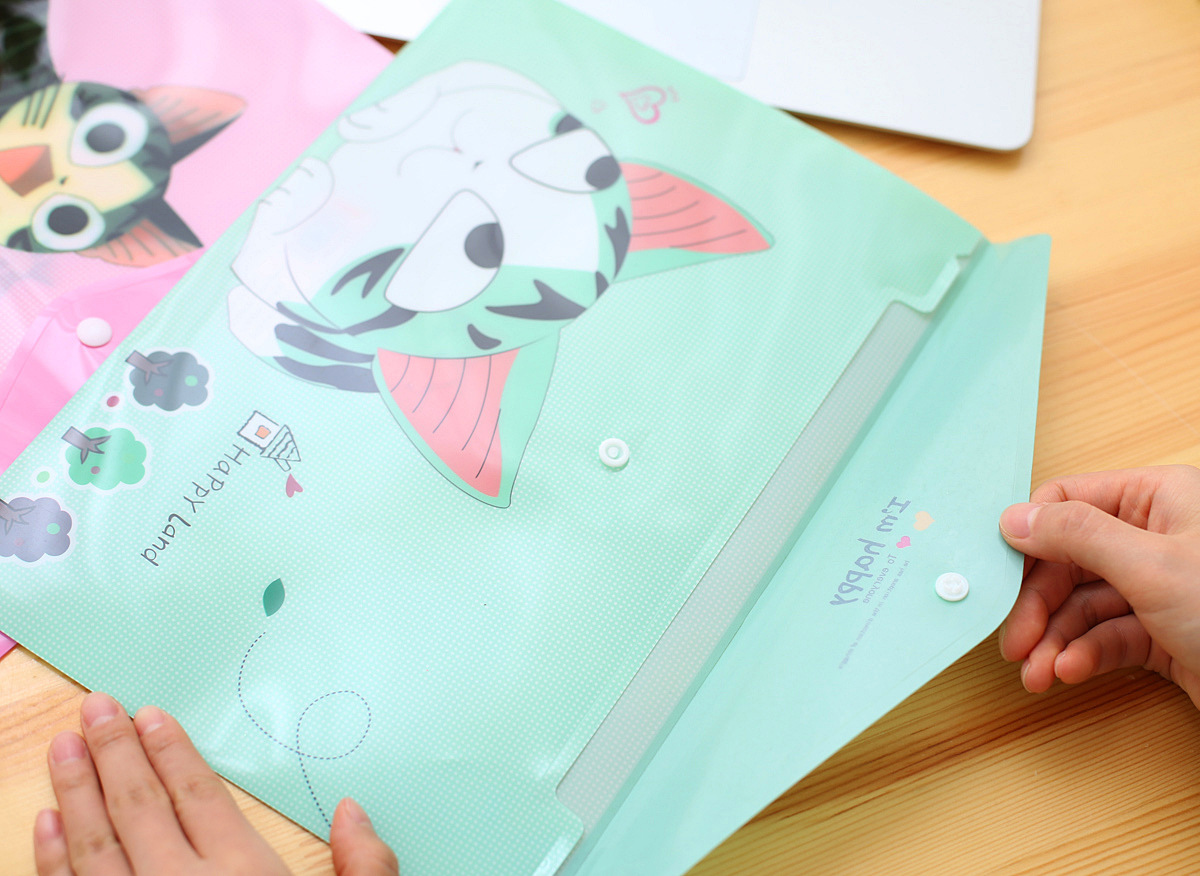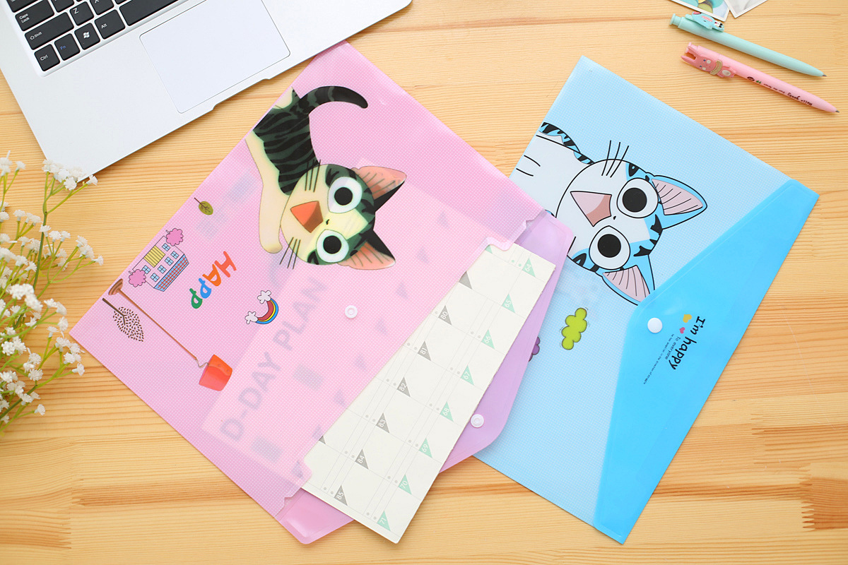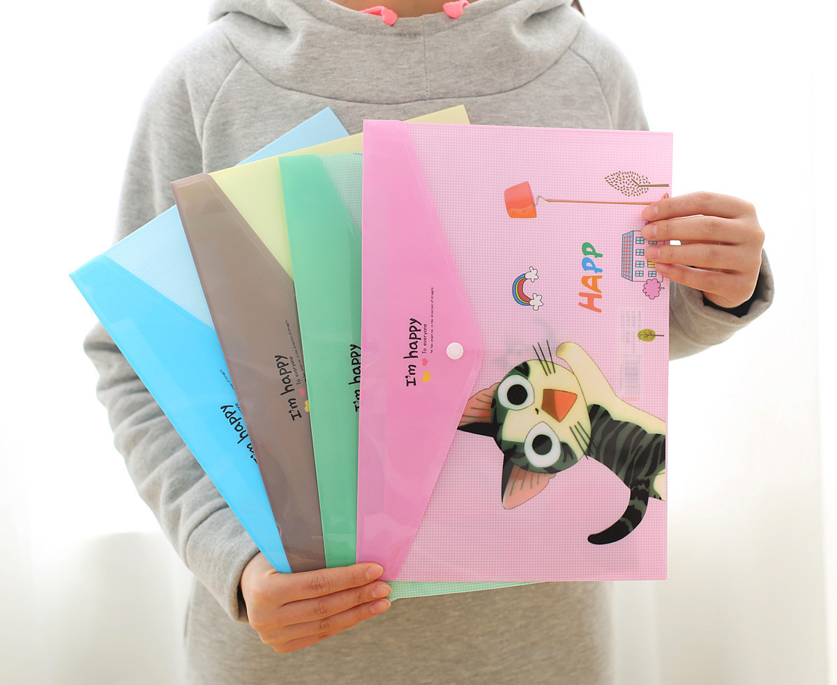 Details:4pk Cute Kitten Cats Fashion A4 Plastic Document Wallets File Folders
