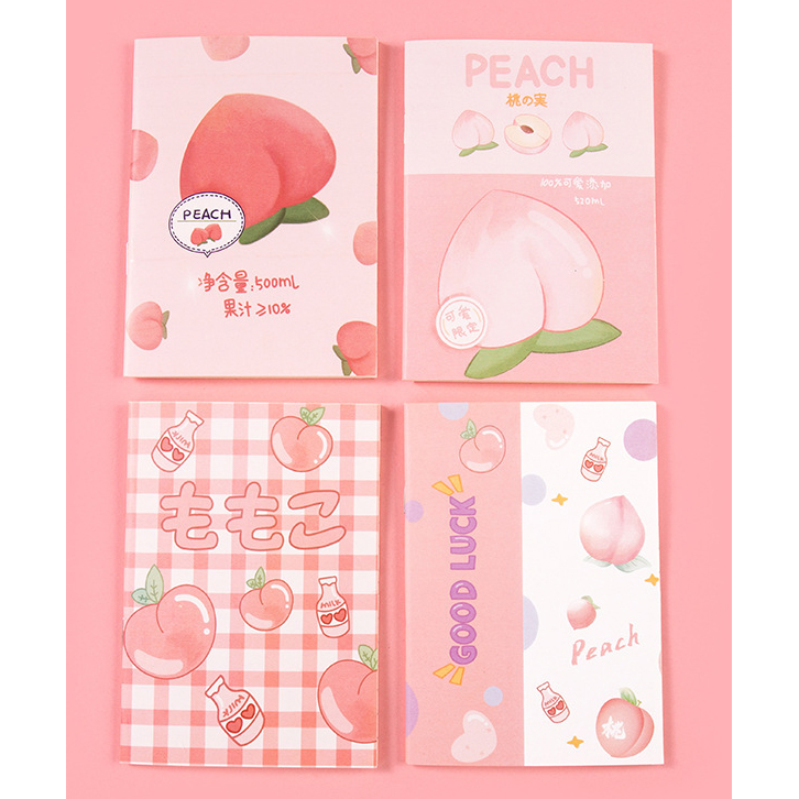 4pk Fruit Peach Pink Cover Cute Mini Notebooks Small Notepads Pocket Memo Pads