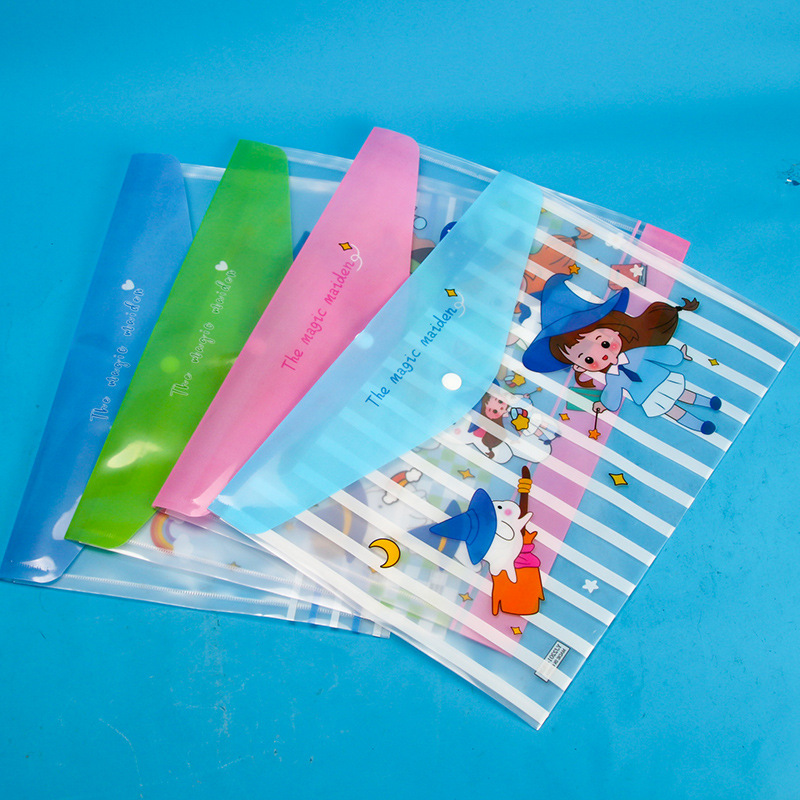 Each folder is made from a strong and lightweight plastic with a fold over triangle flap secured with a press stud.