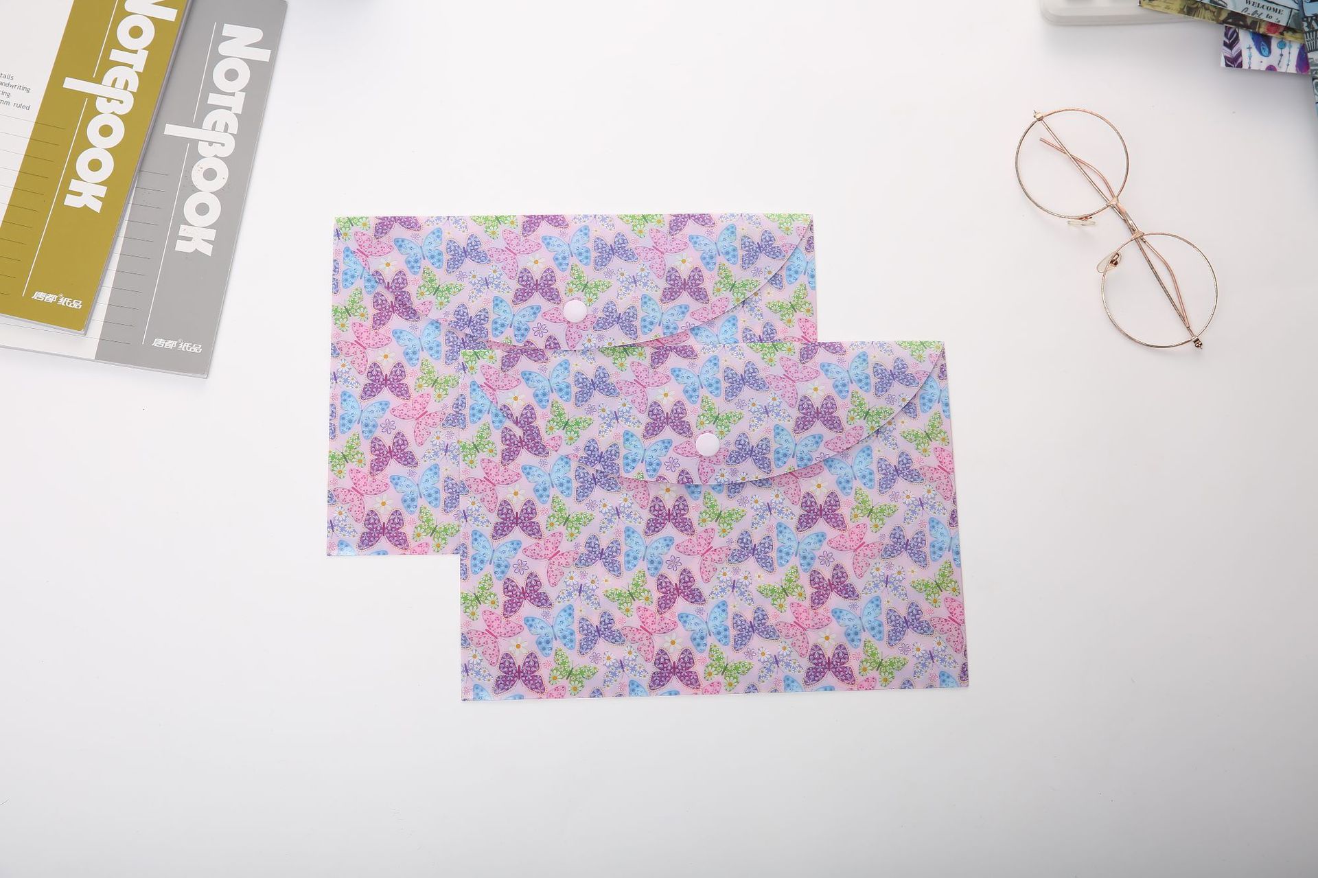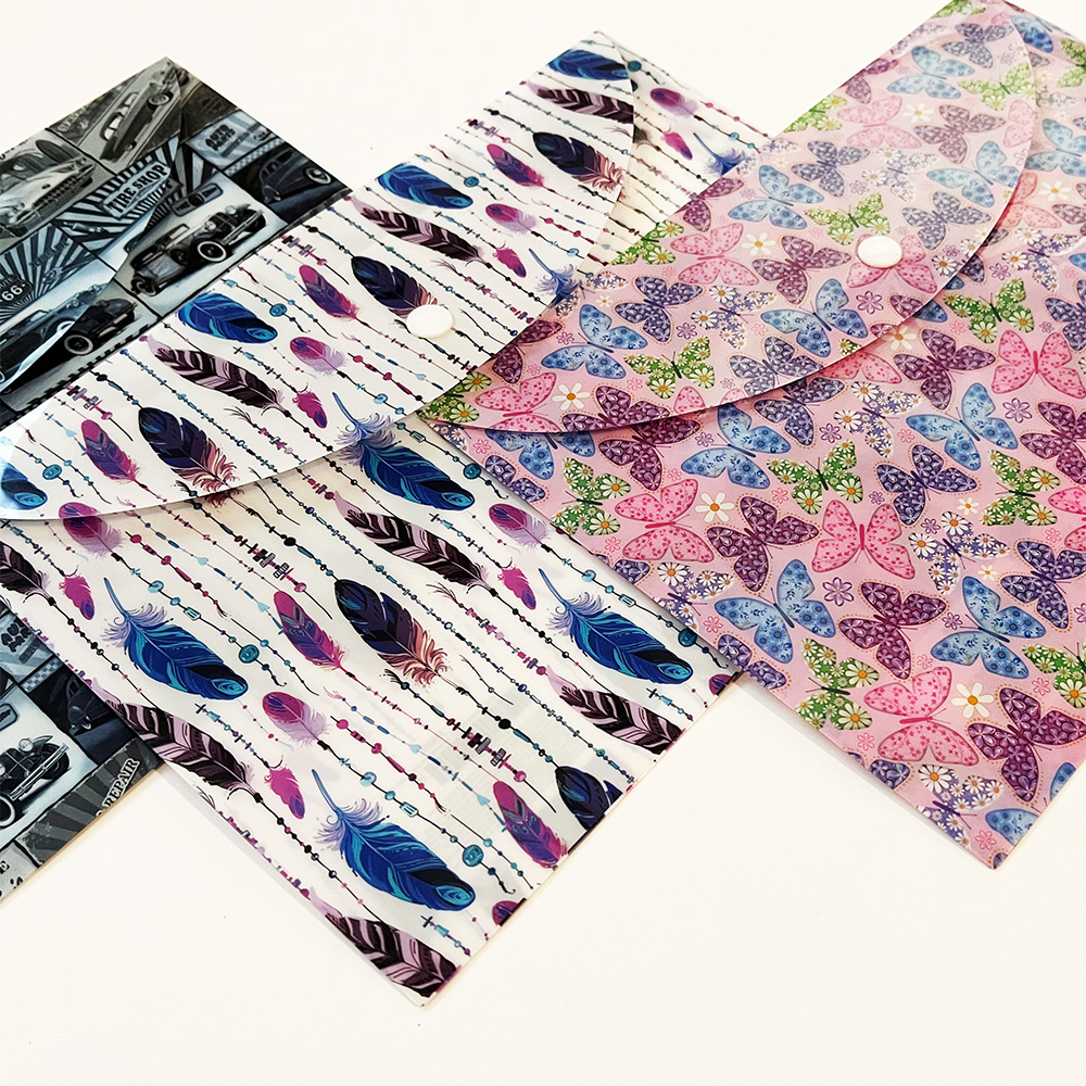 Each folder is made from a strong and lightweight plastic with a fold over triangle flap secured with a press stud.