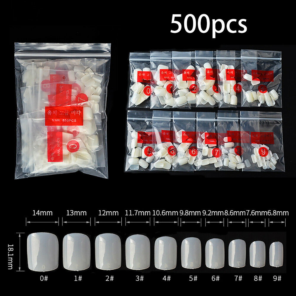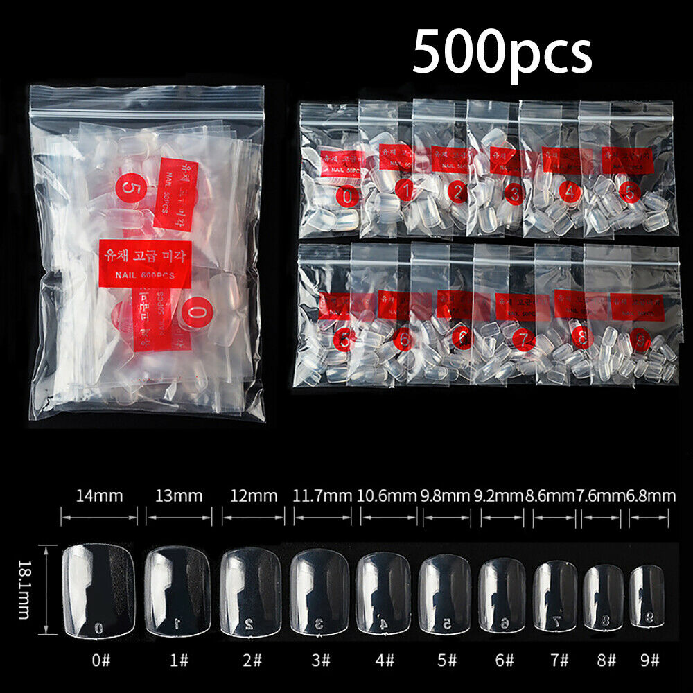 500pcs Half Cover Squoval False Nail Tips Fake Nails With Glue Nail File