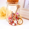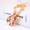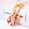 Electric guitar shaped bag charm handbag keyring decorated with sparkling red and white crystal rhinestones.