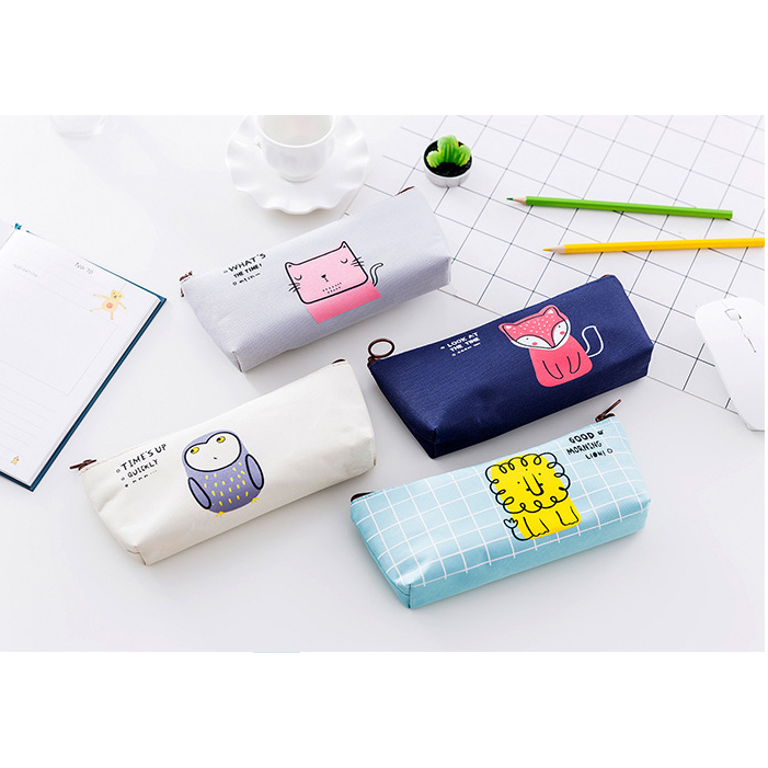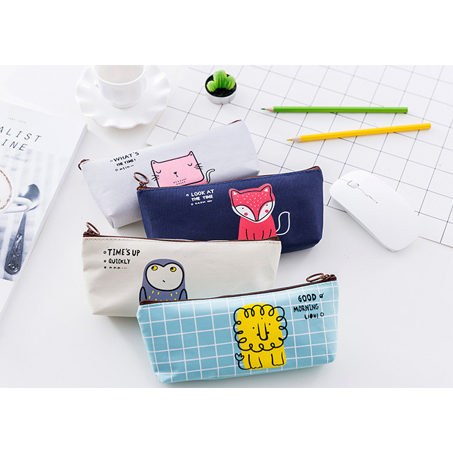 Animals Cat Owl Fox Lion Canvas Cute Pencil Cases Make Up Bags Pen Pouches