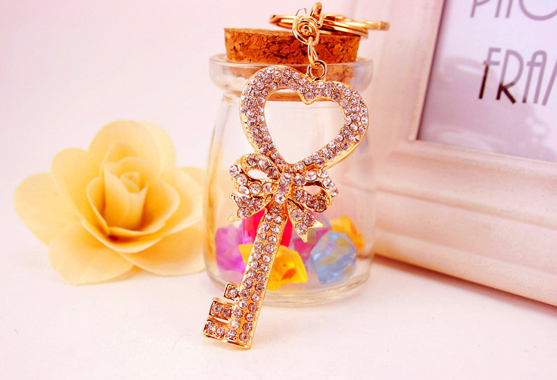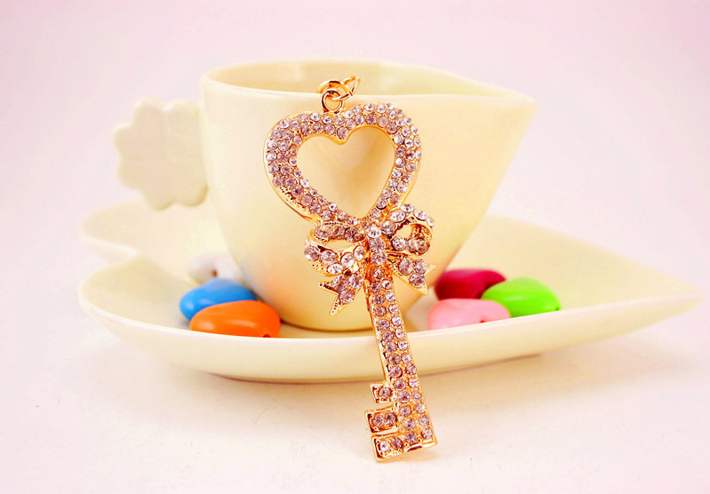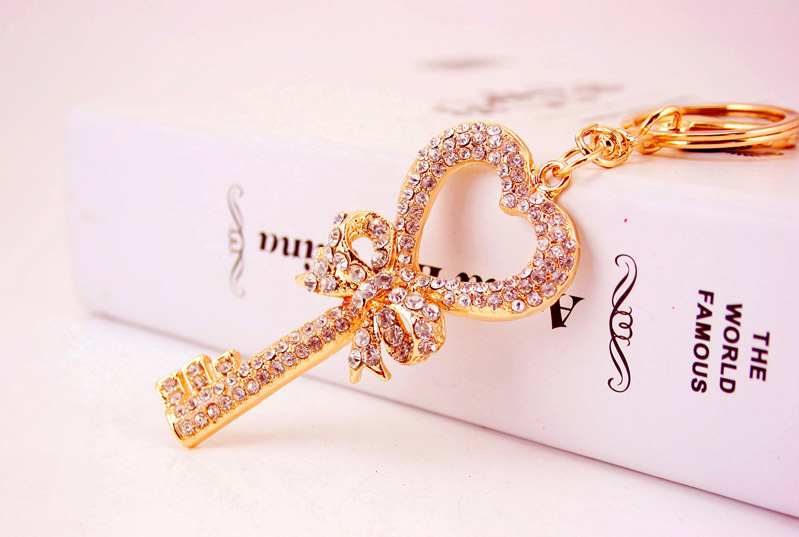 Details:Antique Key Shaped With Love Heart And Bow Crystal Diamante Rhinestone Bag Charms Handbag Keyrings