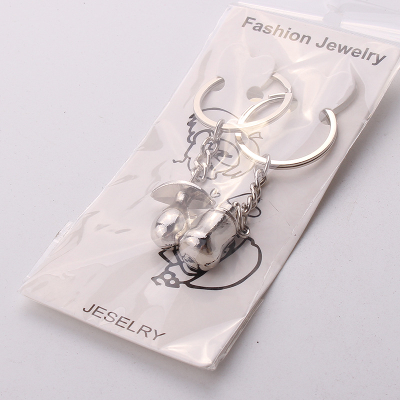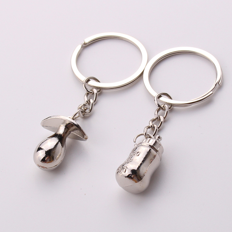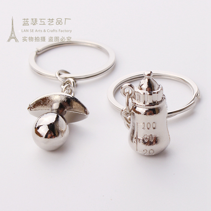 Baby Feeding Bottle Tummy Silver Metal Couple Keyrings Lovers Puzzle Key Chains Novelty Gift Present