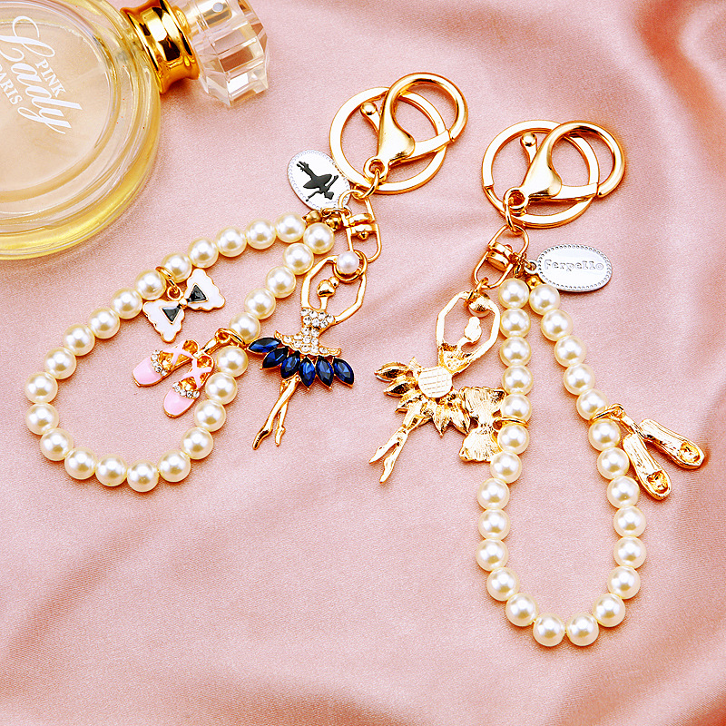 Details:Ballerina Girl White Pearls Chain Crystal Diamante Bag Charms Handbag Keyrings