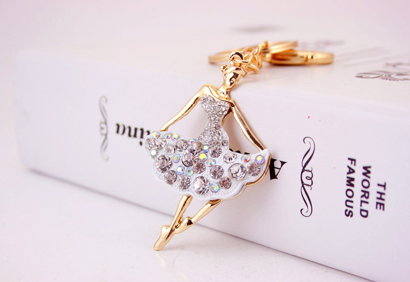 Ballerina Shaped Crystal Diamante Rhinestone Bag Charms Handbag Keyrings Pendant Key Chain