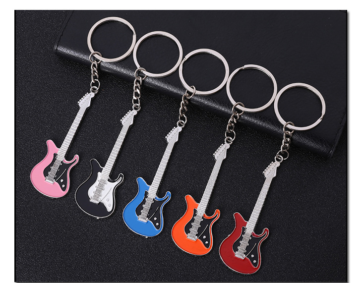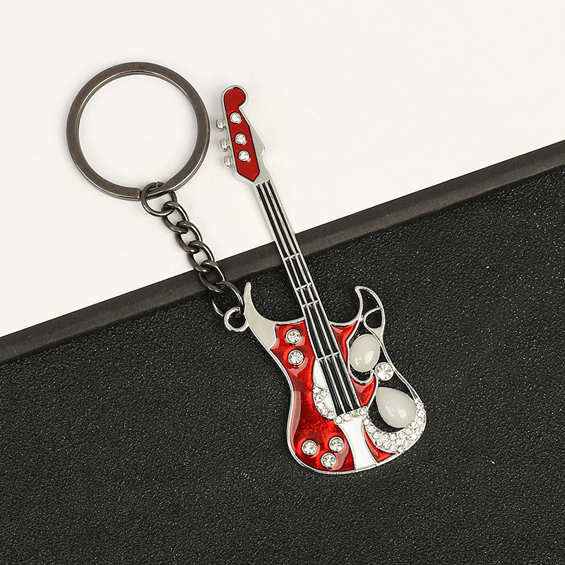 | Details: | Black Red Electric Guitar Silver Metal Keyring Key Chain Novelty Gift Present |