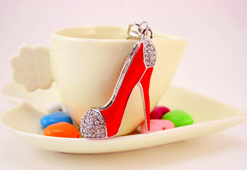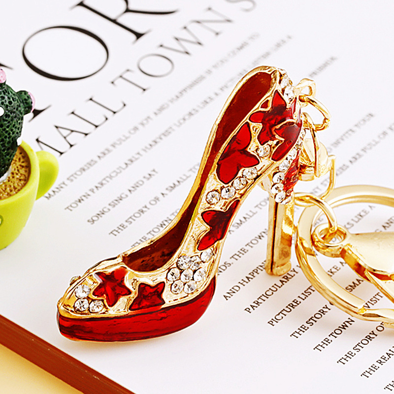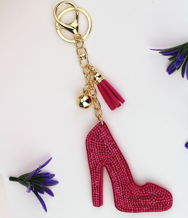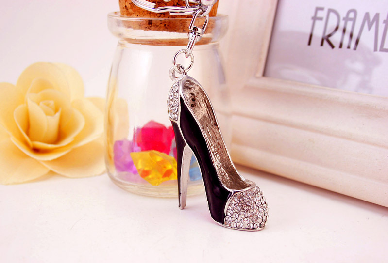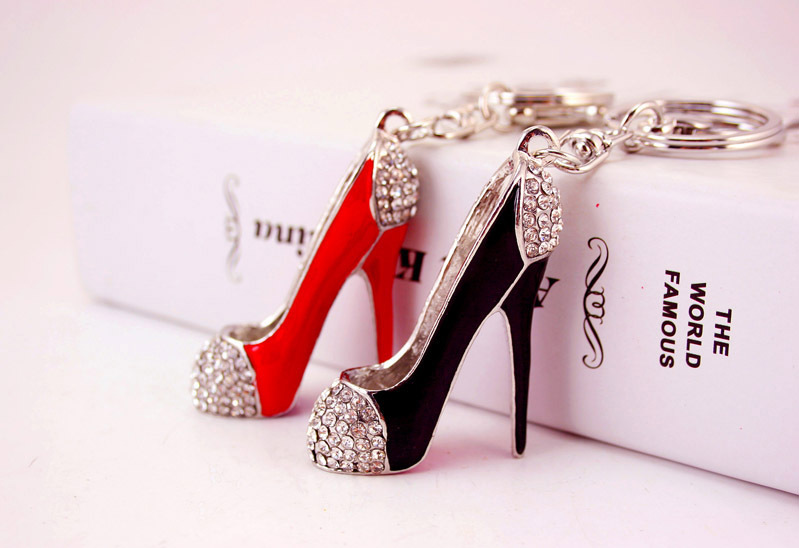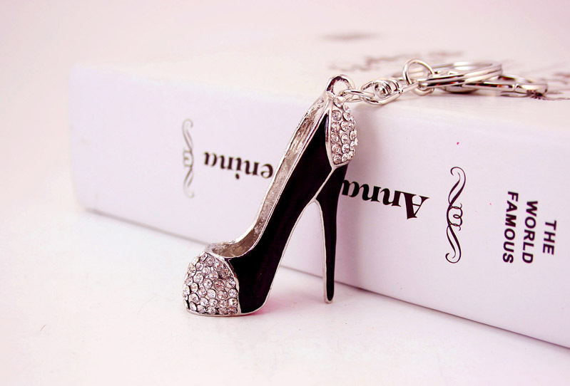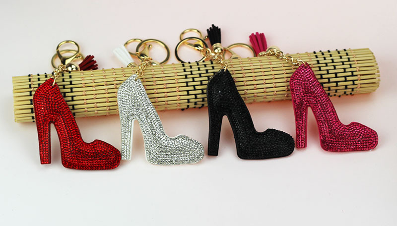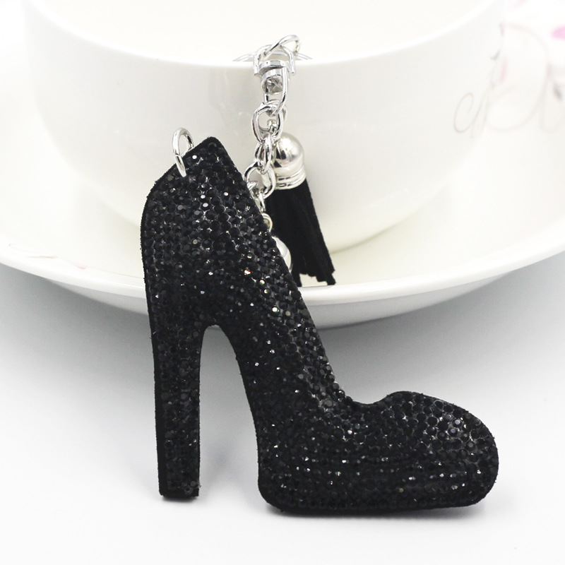 Black Red High Heeled Shoe Crystal Diamante Rhinestone Bag Charms Handbag Keyrings Pendant Key Chain