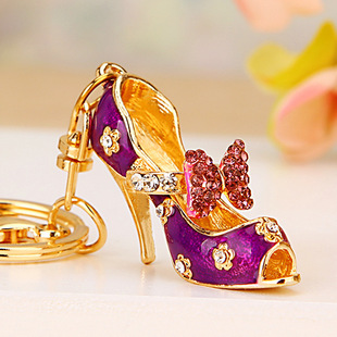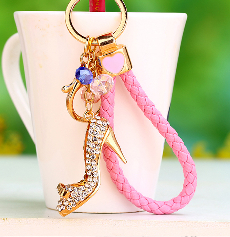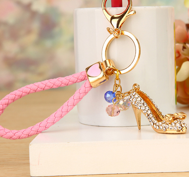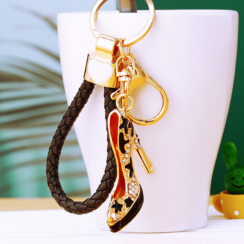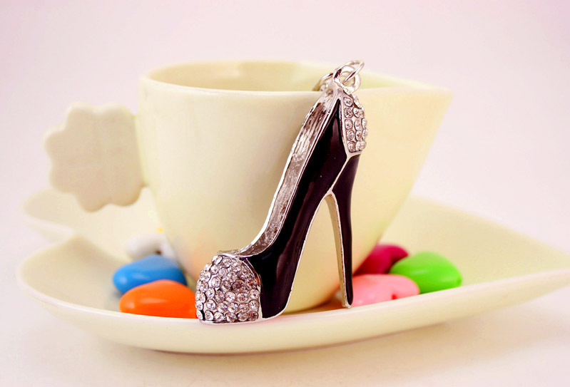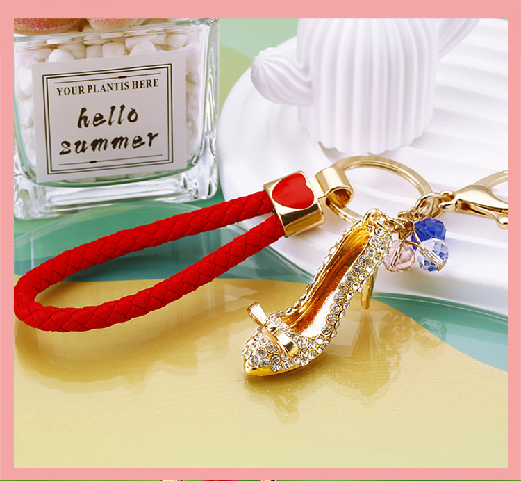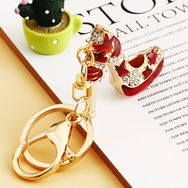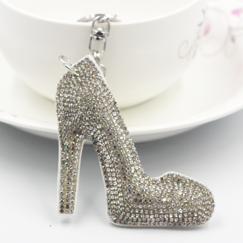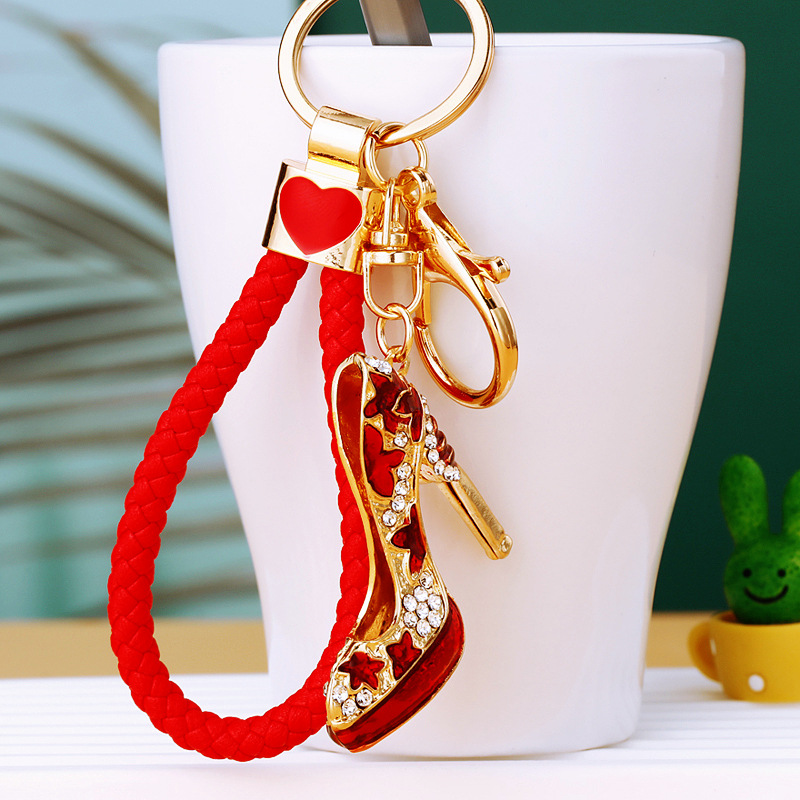 Black Red High Heeled Shoe Crystal Diamante Rhinestone Bag Charms Handbag Keyrings Pendant Key Chain