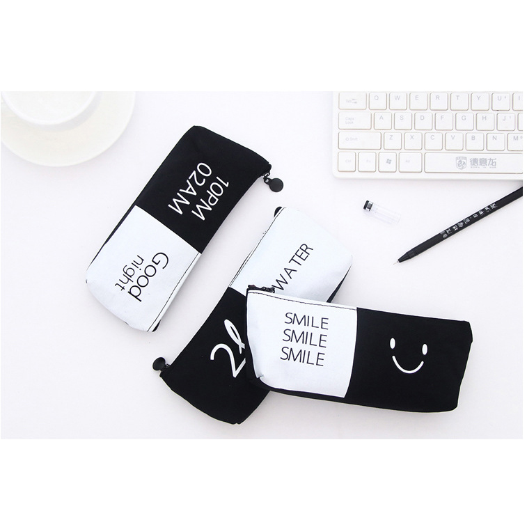 Black White Healthy Lifestyle Canvas Fabric Cute Fashion Pencil Case