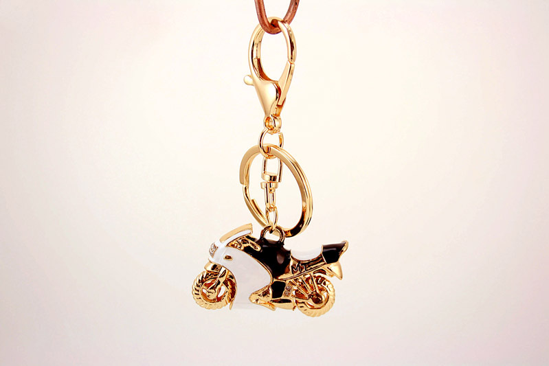 Black White Motorbike Motorcycle Diamante Bag Charm Handbag Keyring Pendant