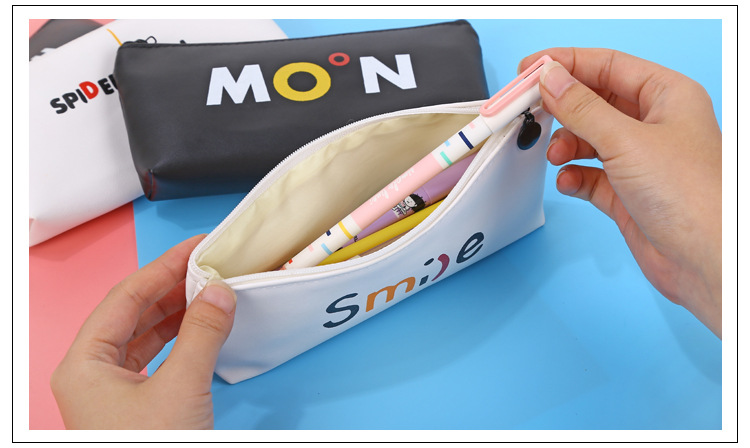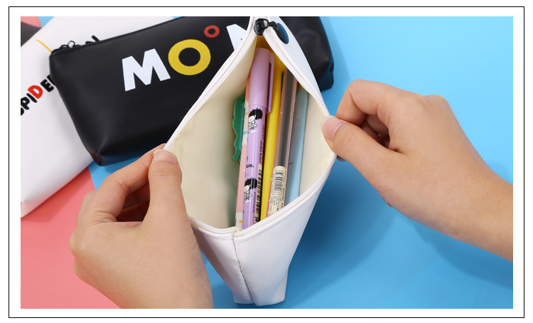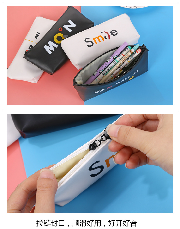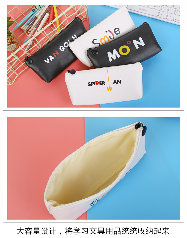 Details:Black White PU Leather Cute Pencil Cases Cosmetics Make Up Bags Pen Pouches