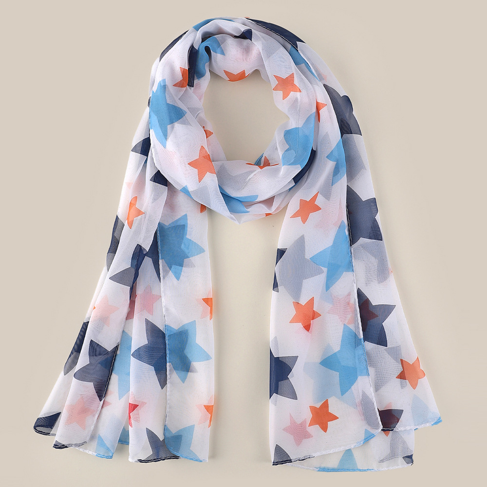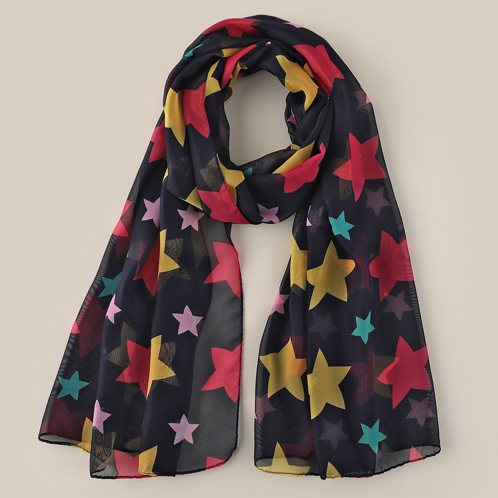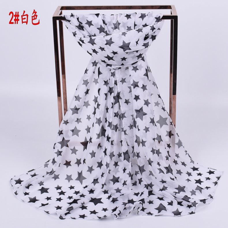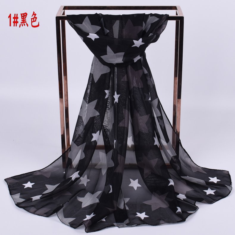 Black White Stars Pattern Fashion Ladies Scarves Chiffon Scarf Womens Shawls