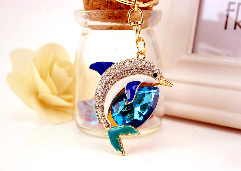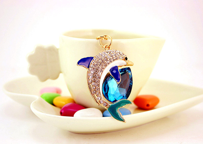 Blue Dolphin Sealife Animal Shaped Crystal Diamante Rhinestone Bag Charms Handbag Keyrings