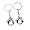 Blue Pink Diamante Dolphins Silver Metal Couple Keyrings Lovers Puzzle Key Chains