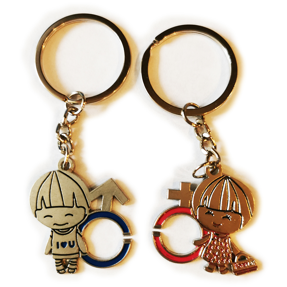 Package includes 1 pair of keyrings