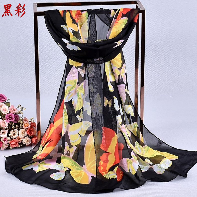 Butterflies Flowers Floral Fashion Ladies Scarves Chiffon Scarf Womens Shawls