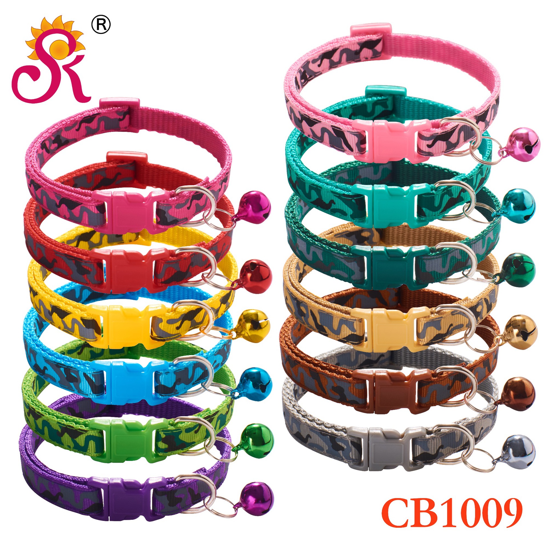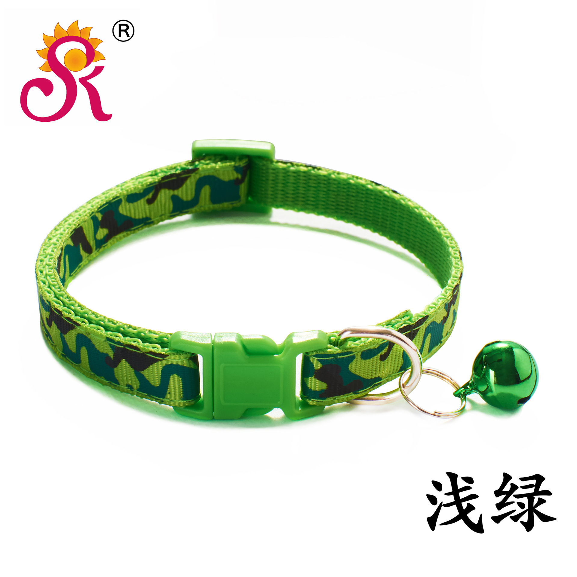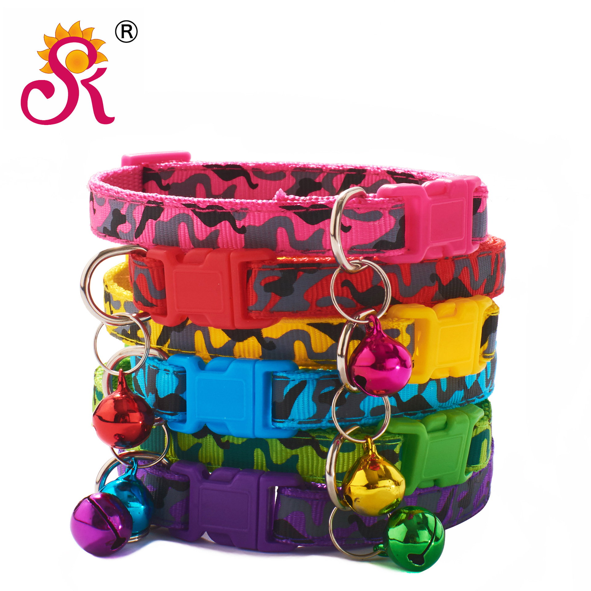 Camouflage Patterned Adjustable Kitten Cat Collar With Bell And Snap Buckle