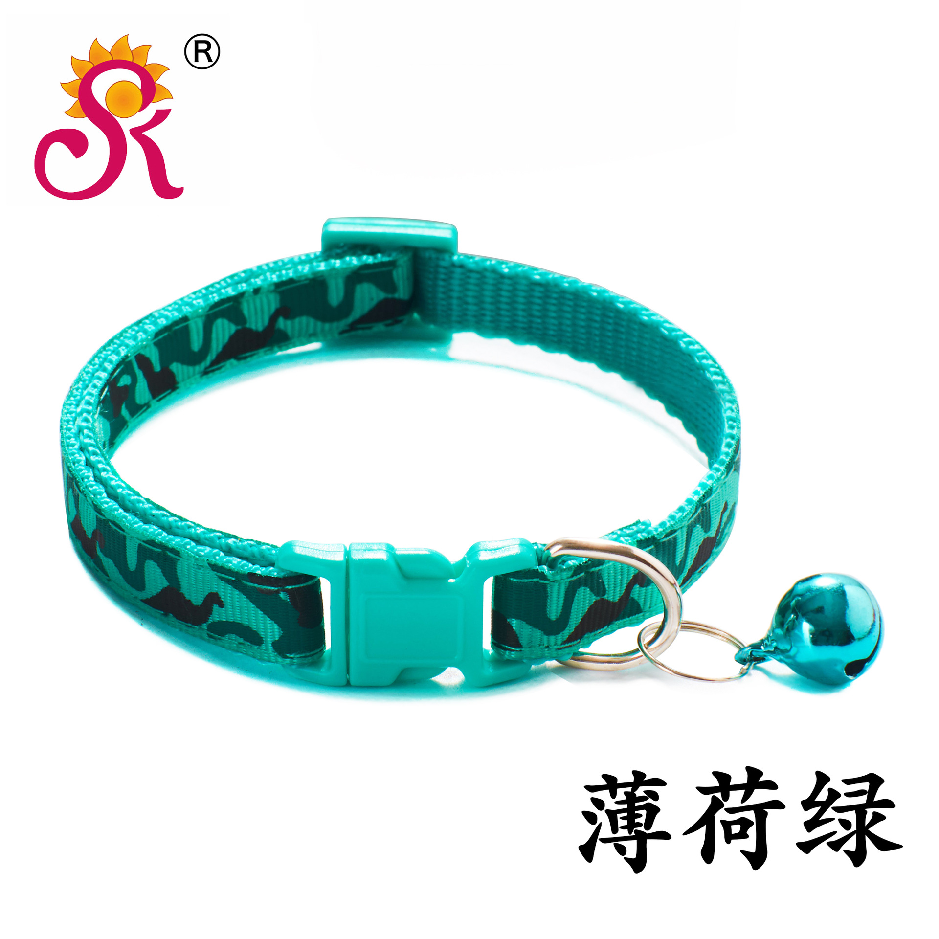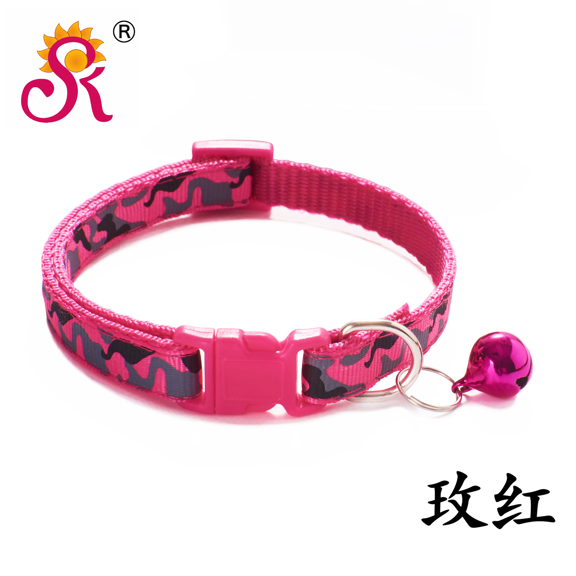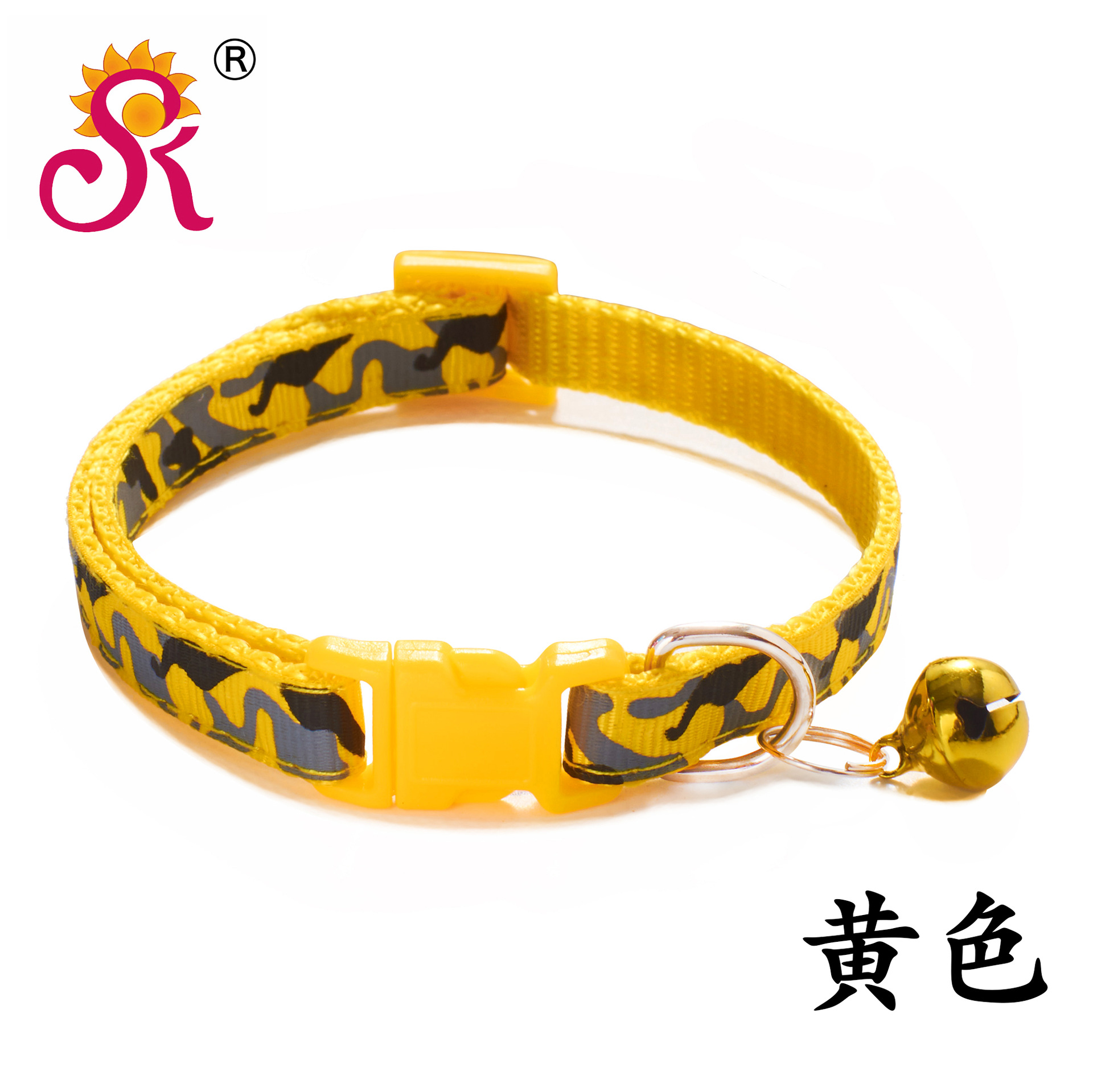 Camouflage Patterned Adjustable Kitten Cat Collar With Bell And Snap Buckle