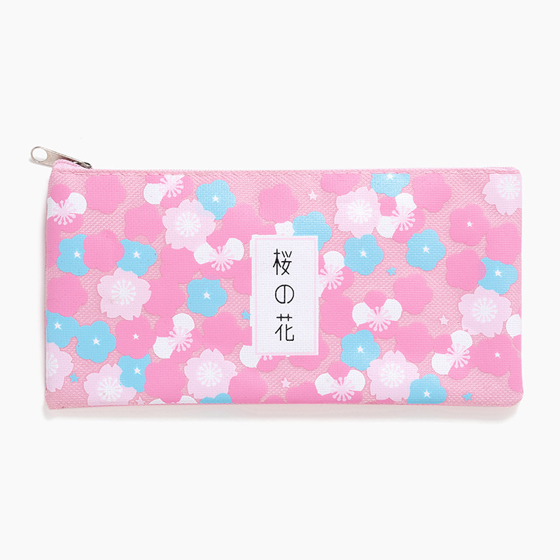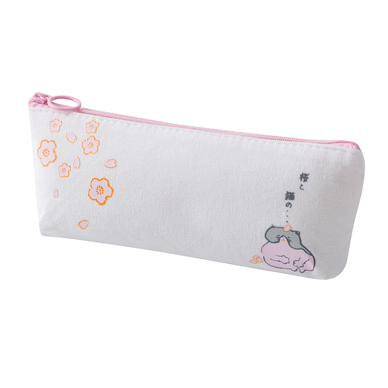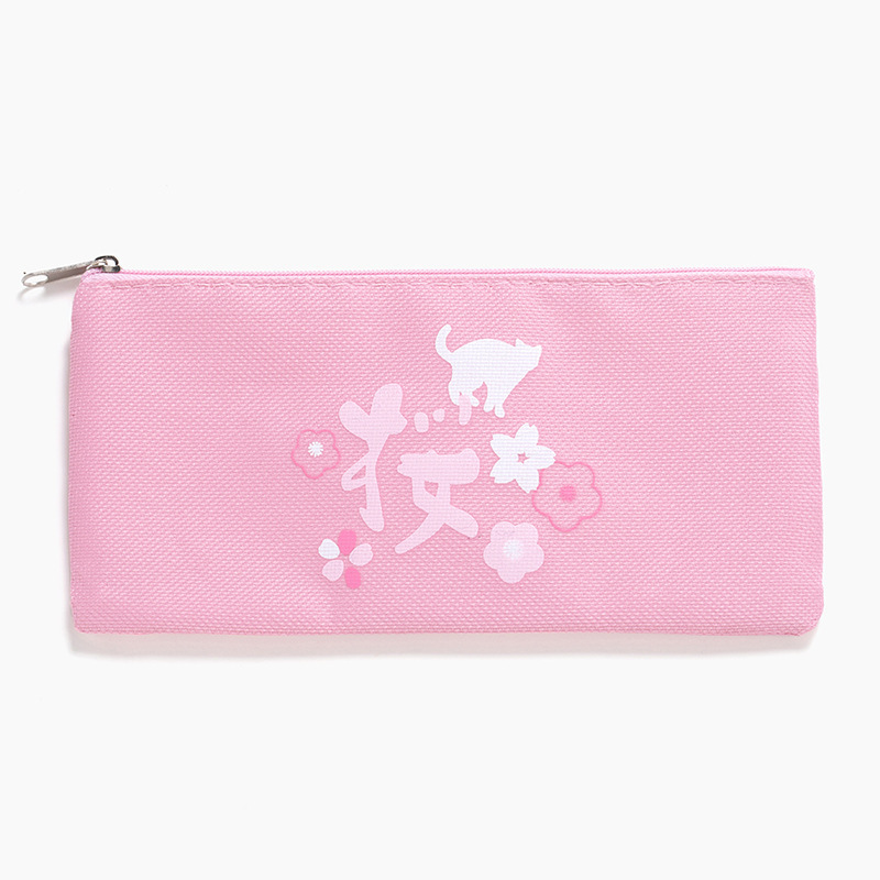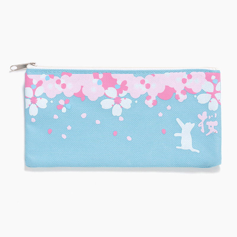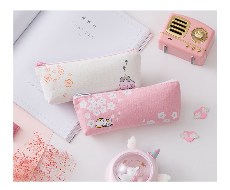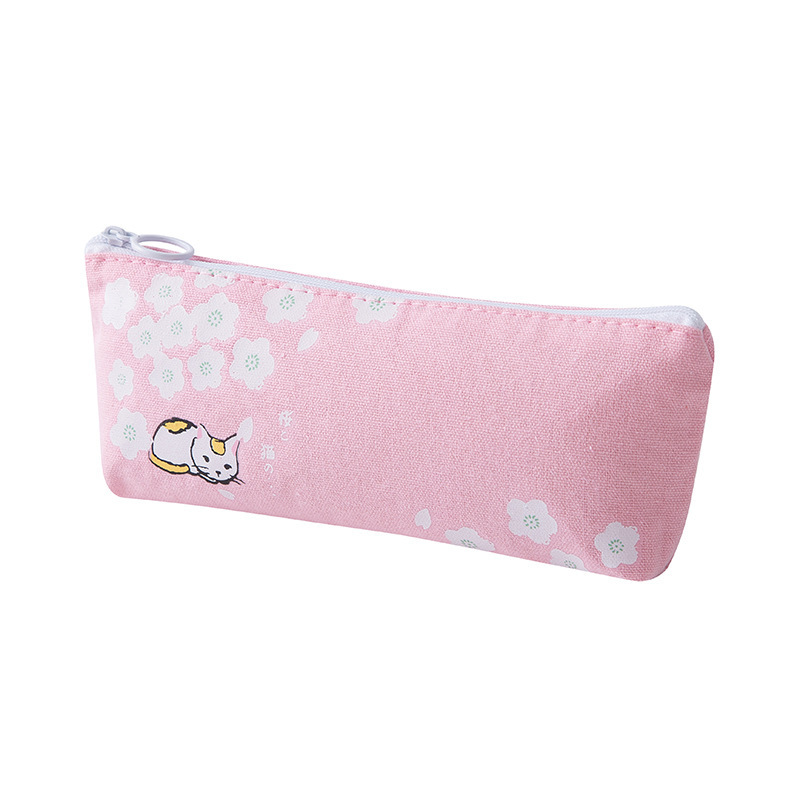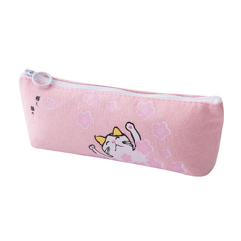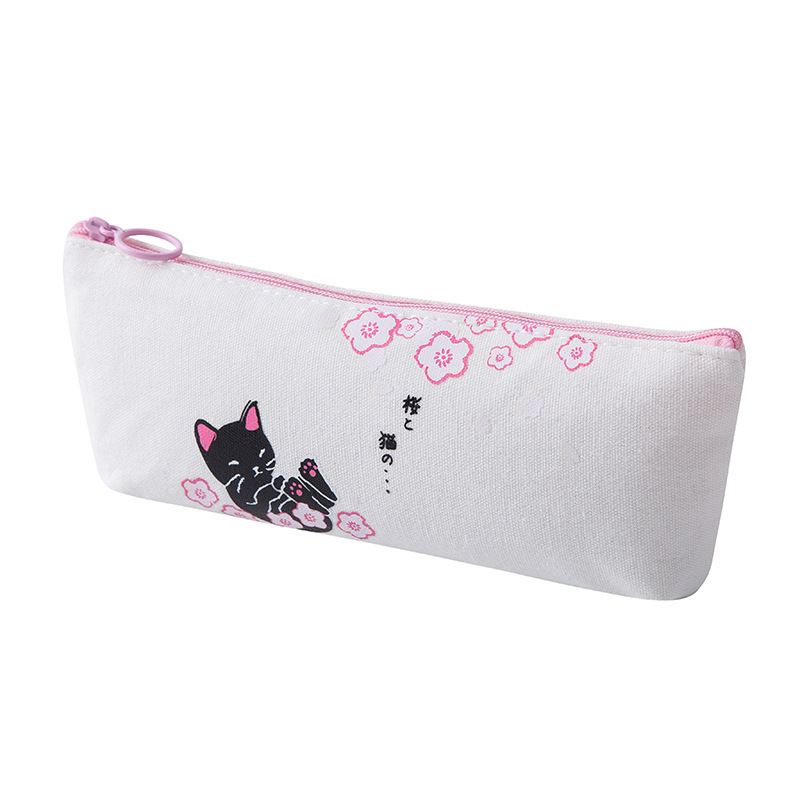 Cat And Cherry Blossom Flowers Japanese Style Cute Canvas Pencil Case