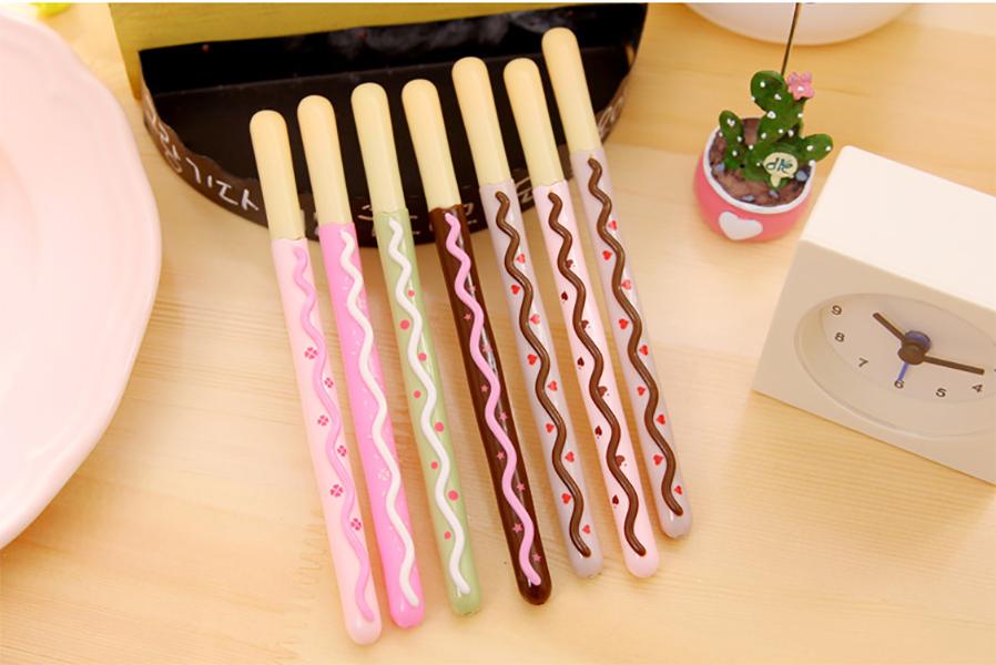 Very cute ballpoint gel pens in novelty design of chocolate biscuit sticks.