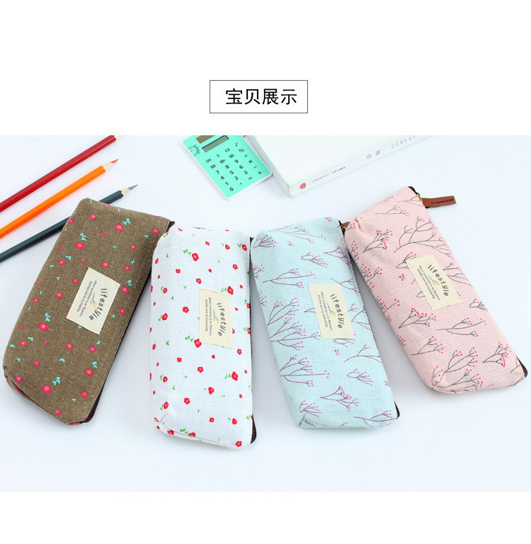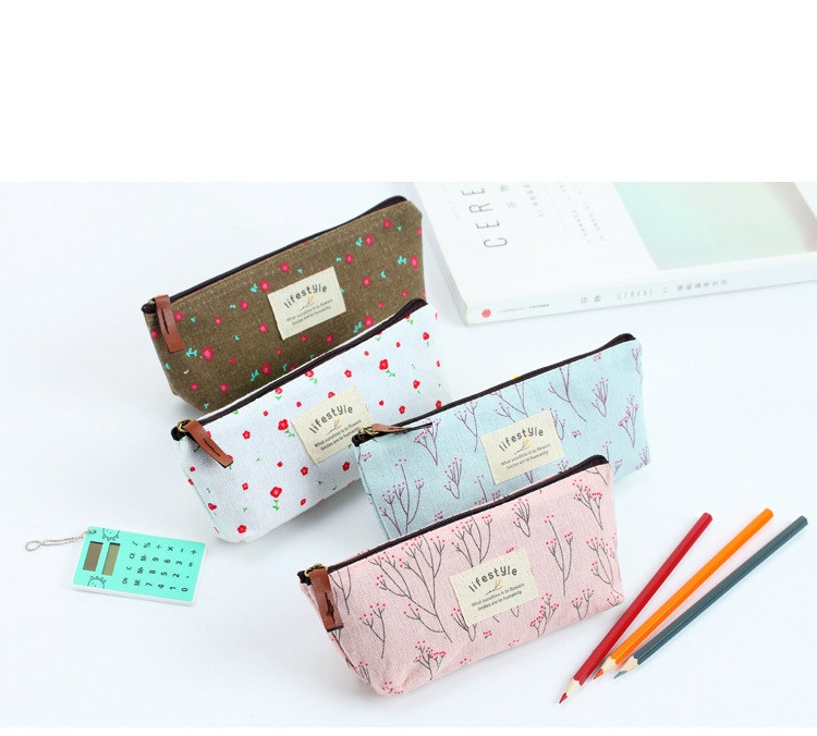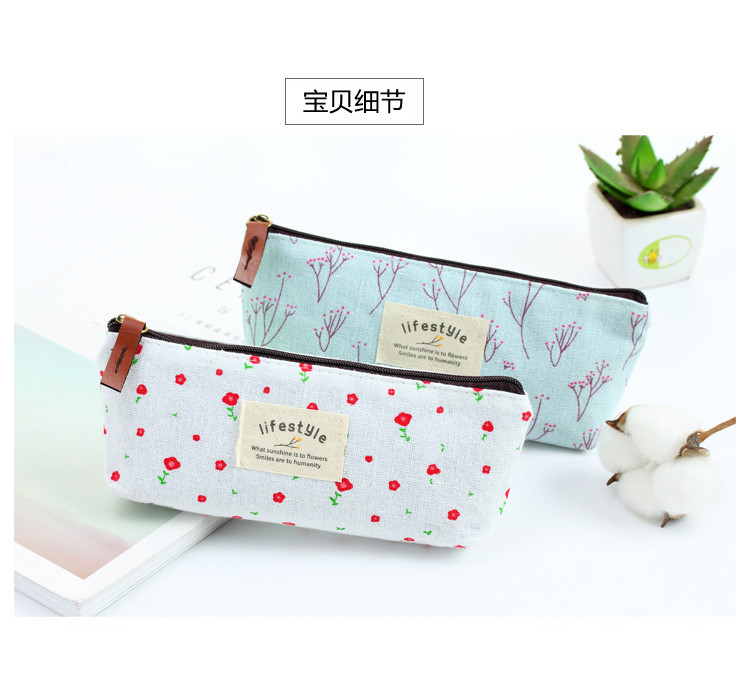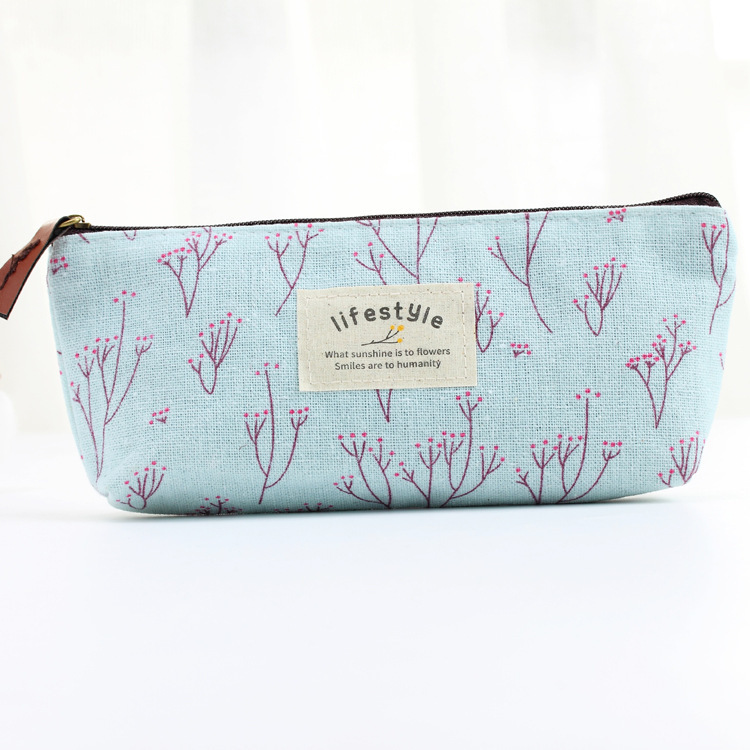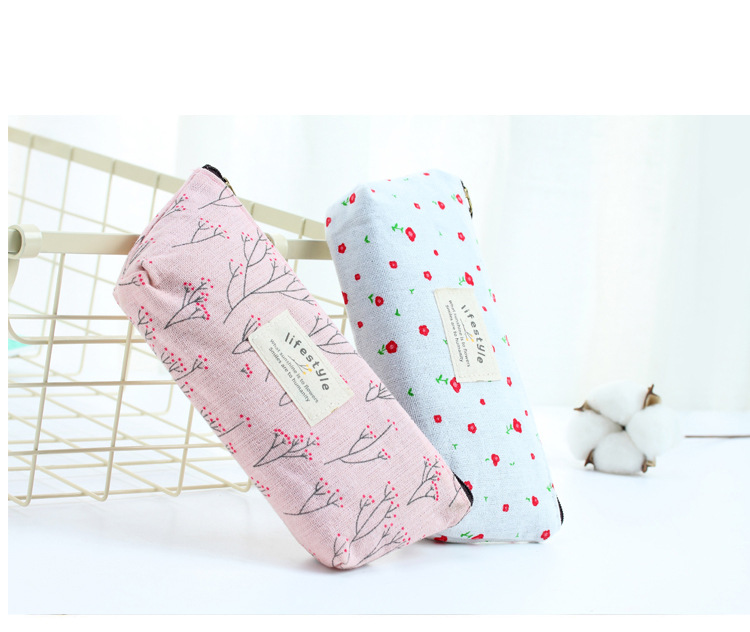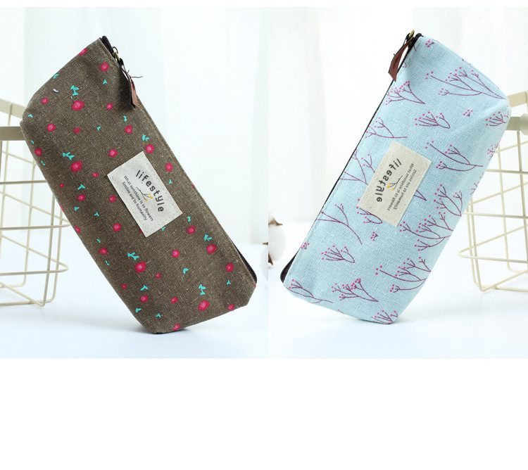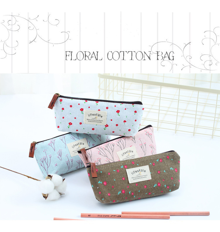 Classic Floral Flowers Patterned Canvas Pencil Case Cosmetics Make Up Bags Pen Pouches