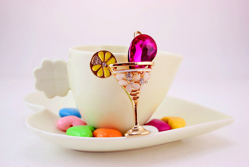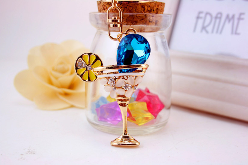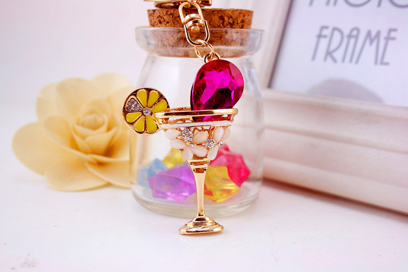 Cocktail Drink Shaped Crystal Diamante Rhinestone Bag Charms Handbag Keyrings