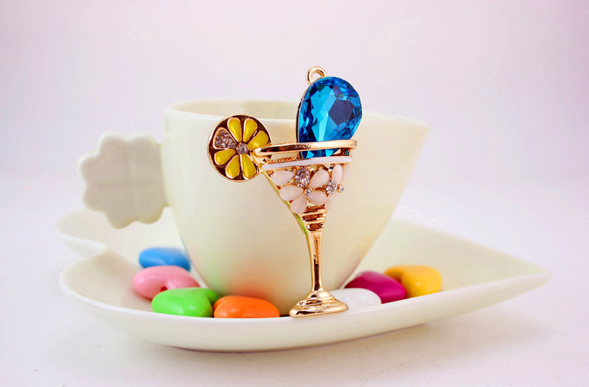 Very unique and creative handbag charm in the design of cocktail drink, available in blue and pink