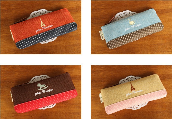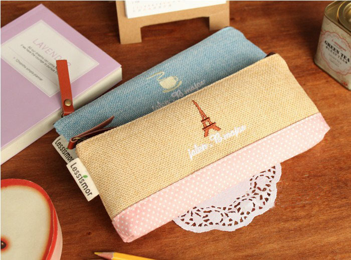 Coffee Rocking Horse Paris Eiffel Tower Canvas Cute Pencil Cases Cosmetics Make Up Bags Pen Pouches