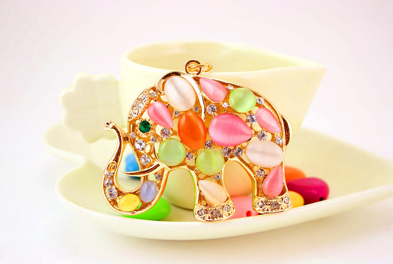 Colourful Elephant Animals Shaped Crystal Diamante Rhinestone Bag Charms Handbag Keyrings Pendant