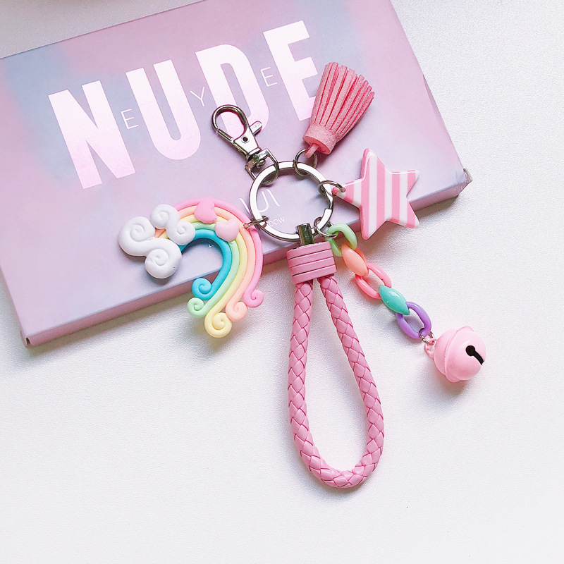 Details:Colourful Rainbow Lollipop Candy Sweet Bell Bag Charm Handbag Keyring Pendant