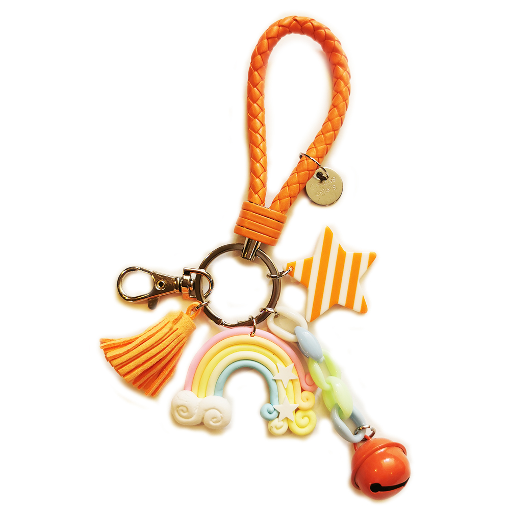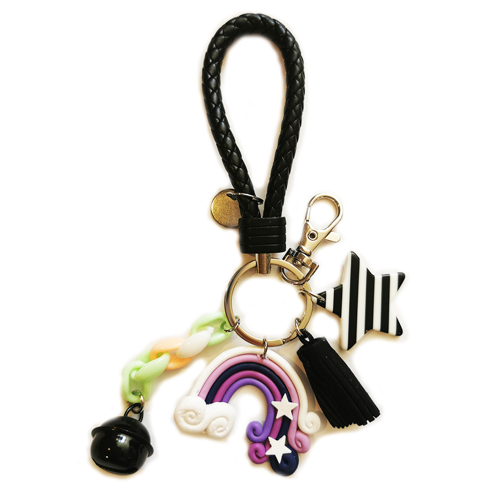 A very unique bag charm with a bunch of rainbow / lollipop, candy sweet and a bell