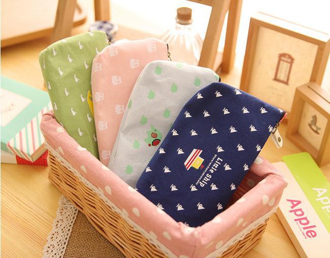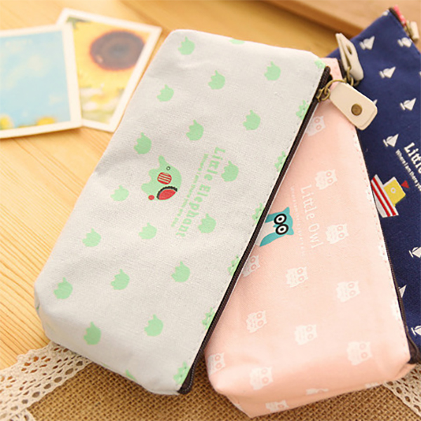 Cute Animals Pattern Canvas Pencil Case Girls Cosmetics Makeup Bag Pen Pouch