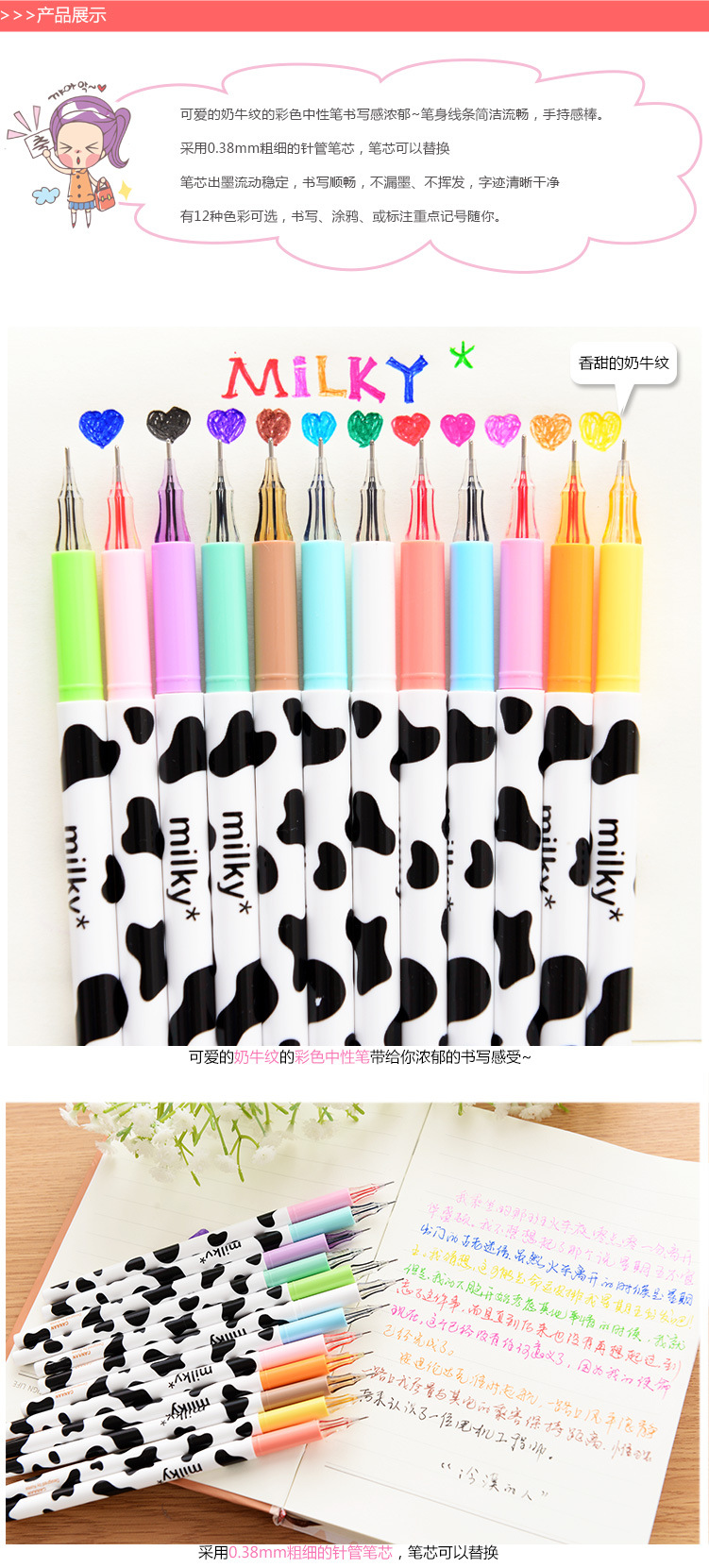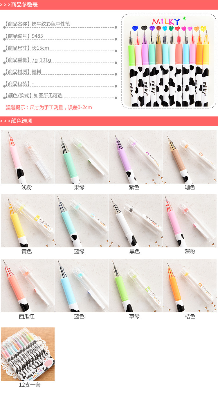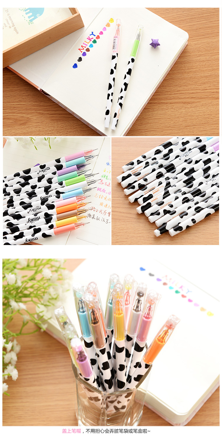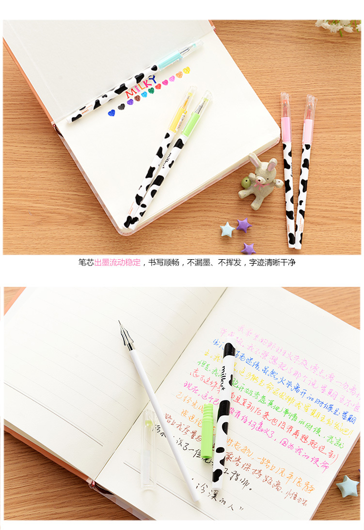 Details:Cute Black White Milky Cow Skin Patterned Color Ink Ballpoint Gel Pens Party Gift Bag Fillers