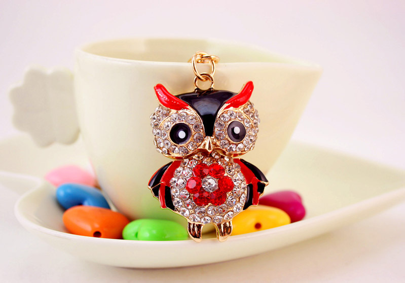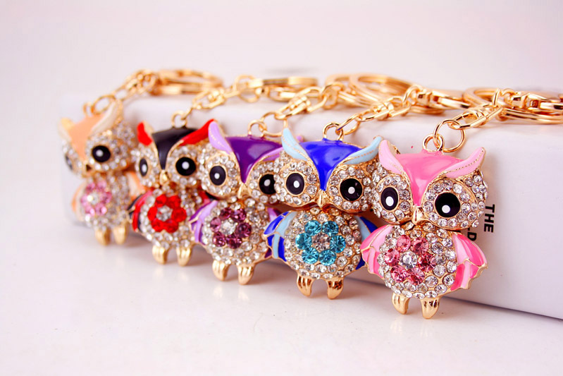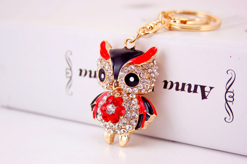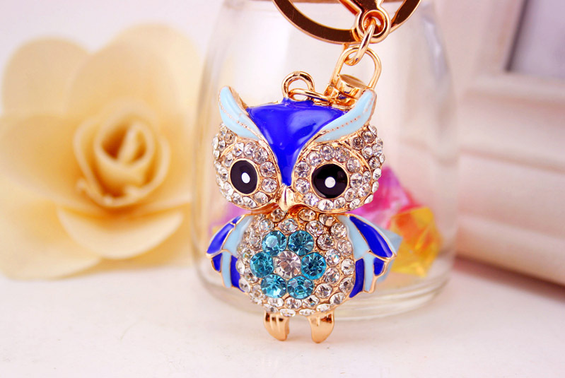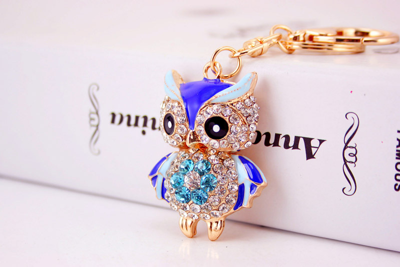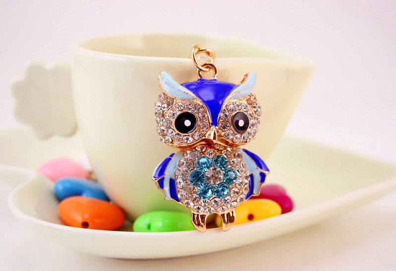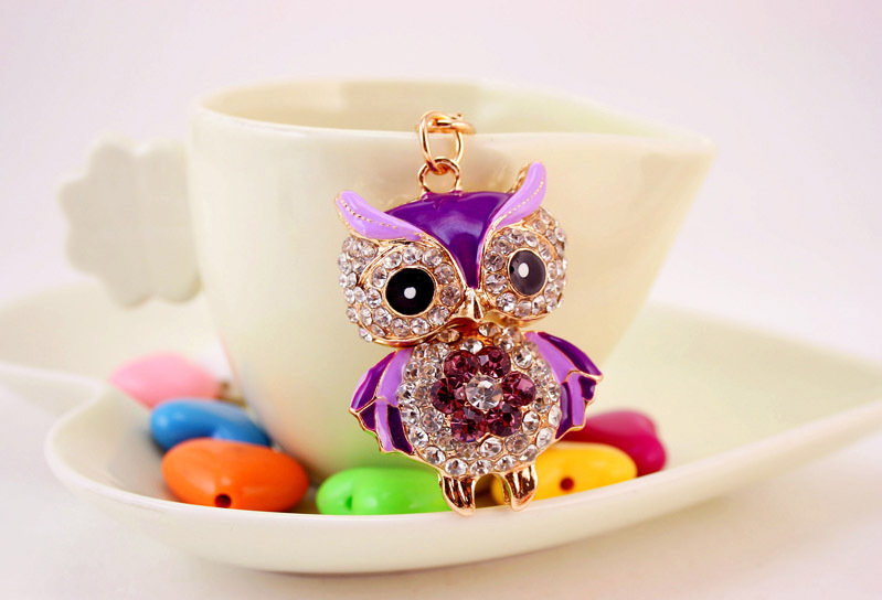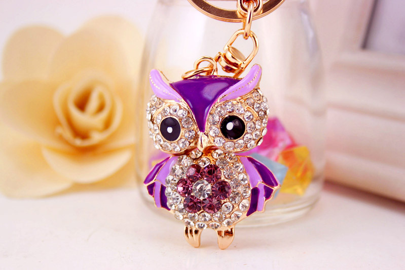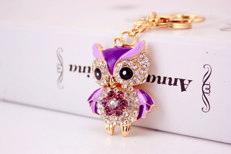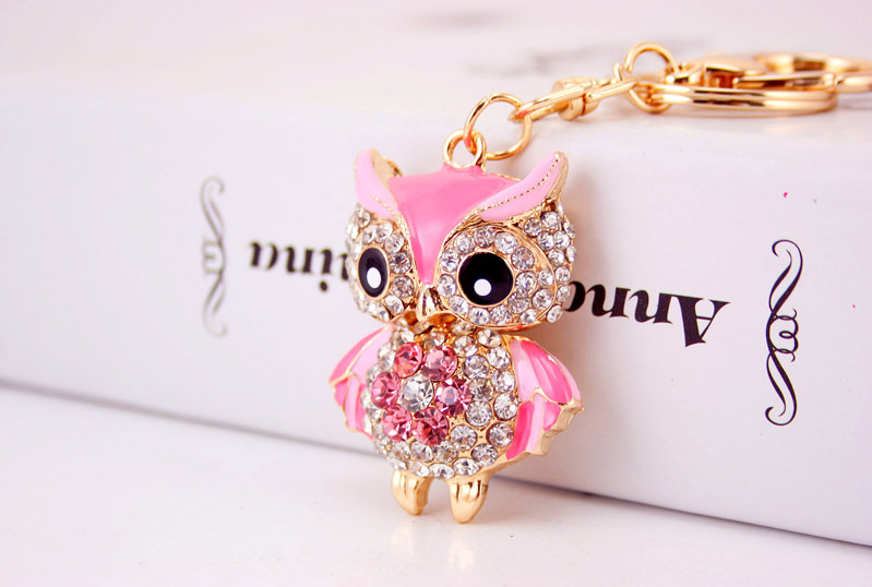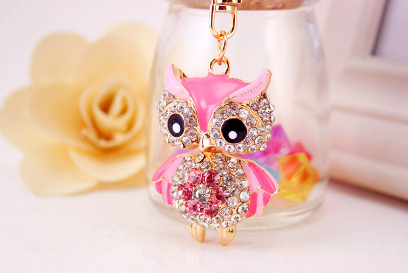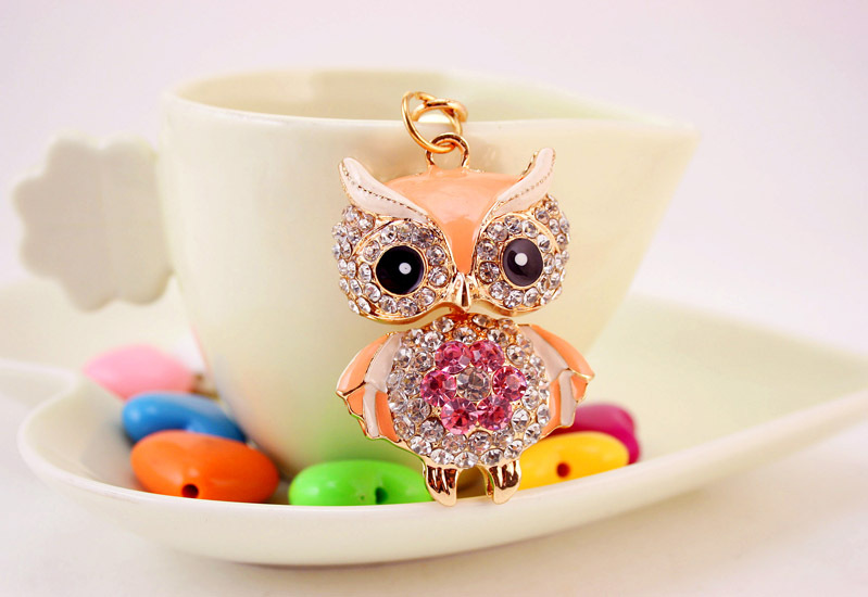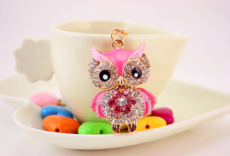 Cute Owl Crystal Diamante Bag Charm Handbag Keyring Pendant