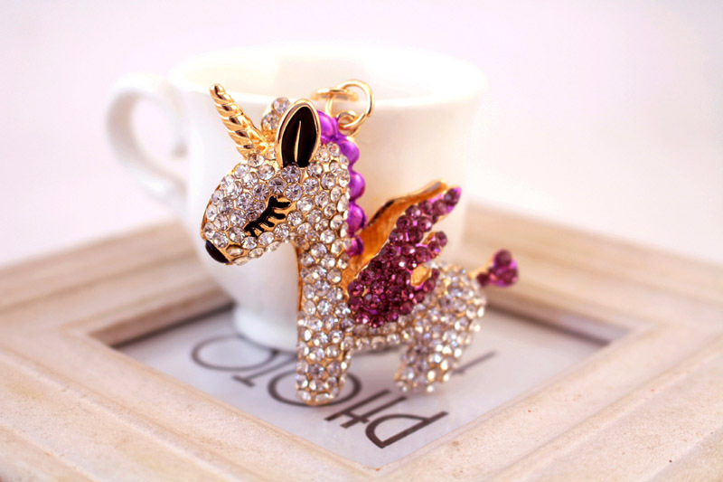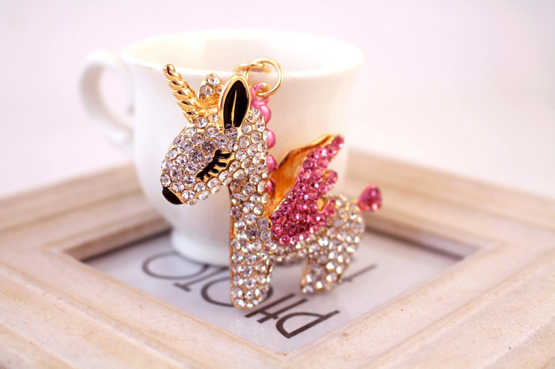 Cute Unicorn Crystal Diamante Bag Charms Handbag Women Keyrings Pendant