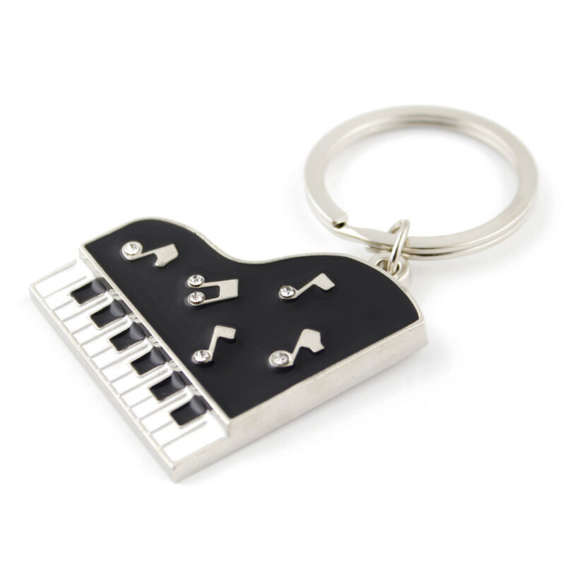 Design: diamante grand piano shaped metal keyring