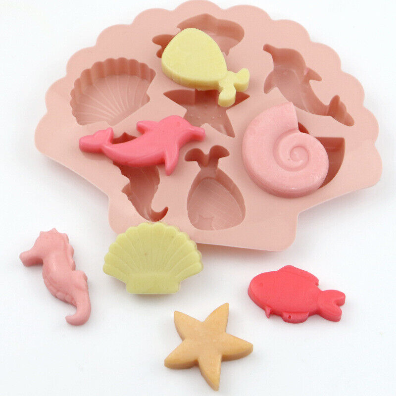 Dolphin Fish Shells Animals Silicone Mould Chocolate Fondant Jelly Ice Cube Mold