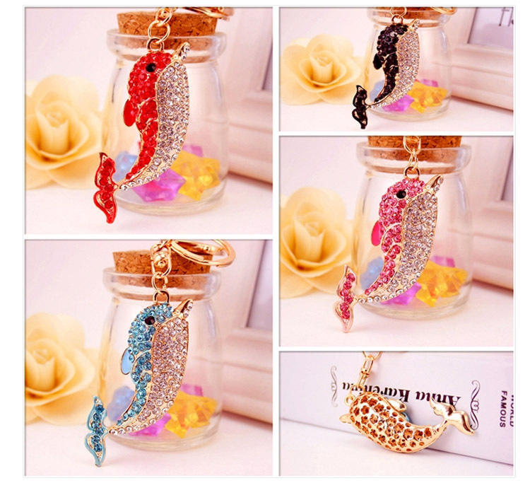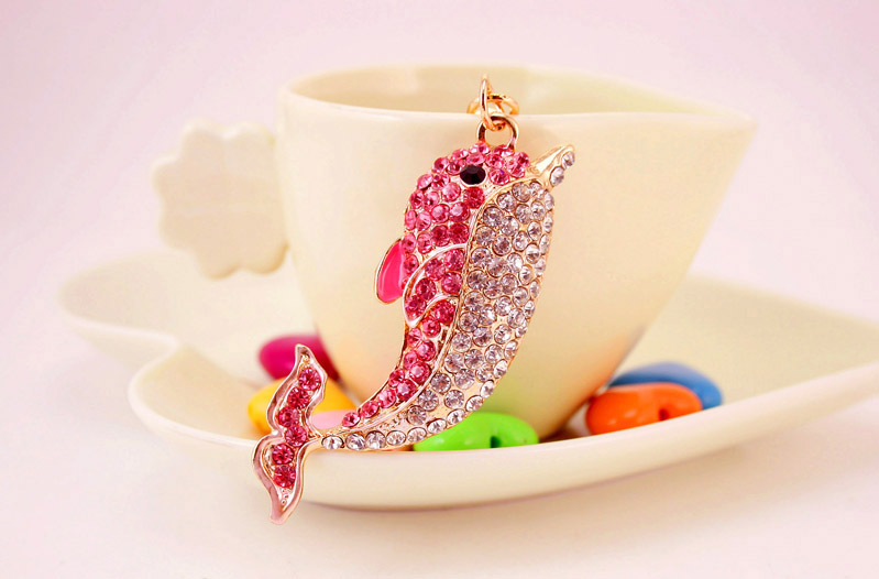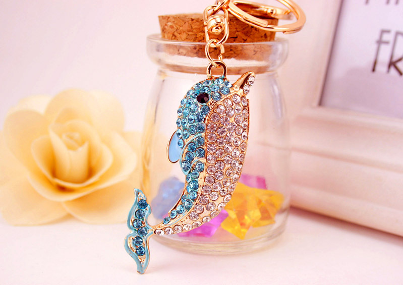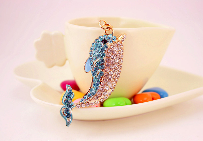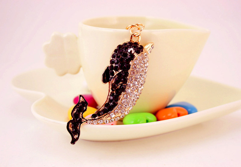 Dolphin Sealife Animals Crystal Diamante Bag Charms Handbag Keyrings Pendant