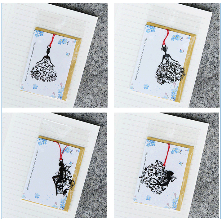 Very cute metal pendant bookmark in fashion designs of elegant girl dress in floral ball gowns, available in 4 different designs as shown in the 2nd product photo.