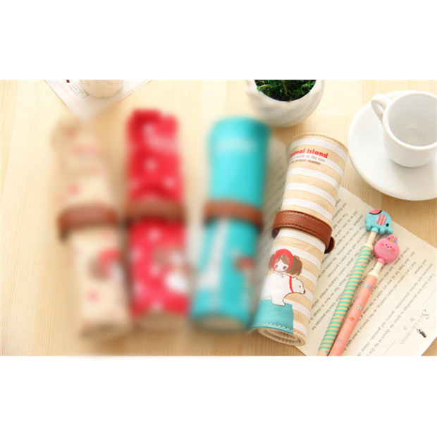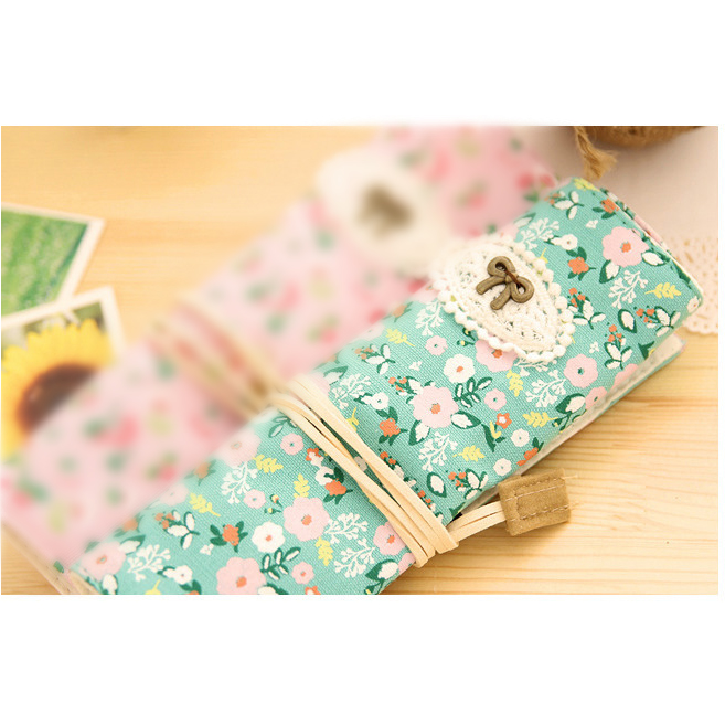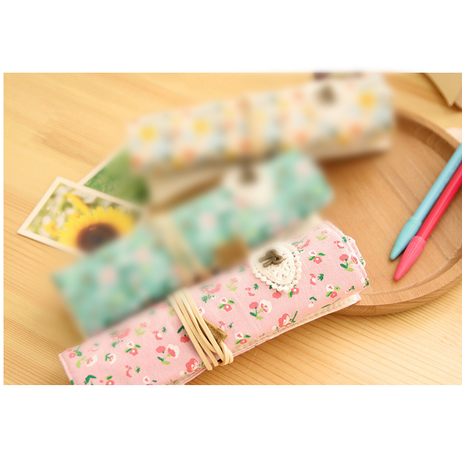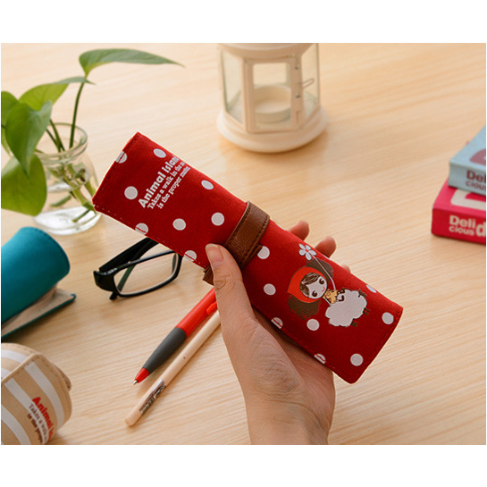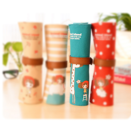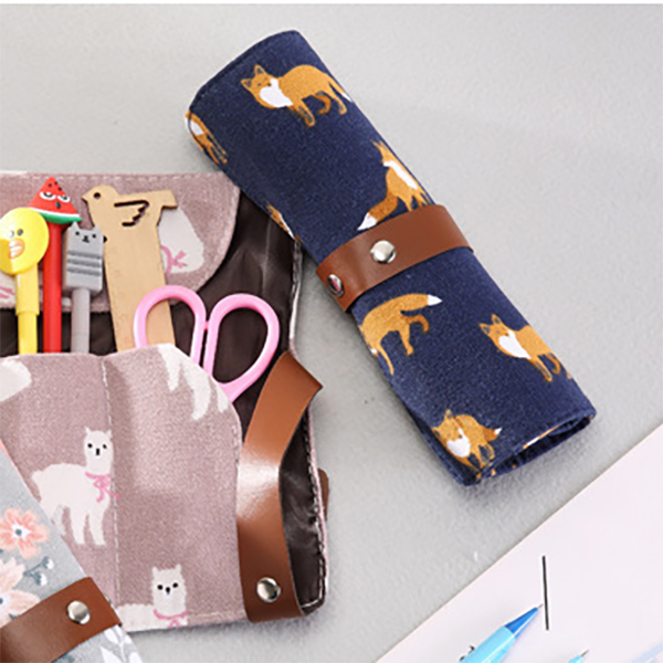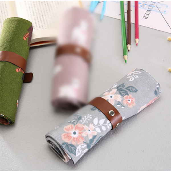 Fashion Animals Flowers Pattern Roll Up Wrap Canvas Fabric Pencil Case Pen Pouch