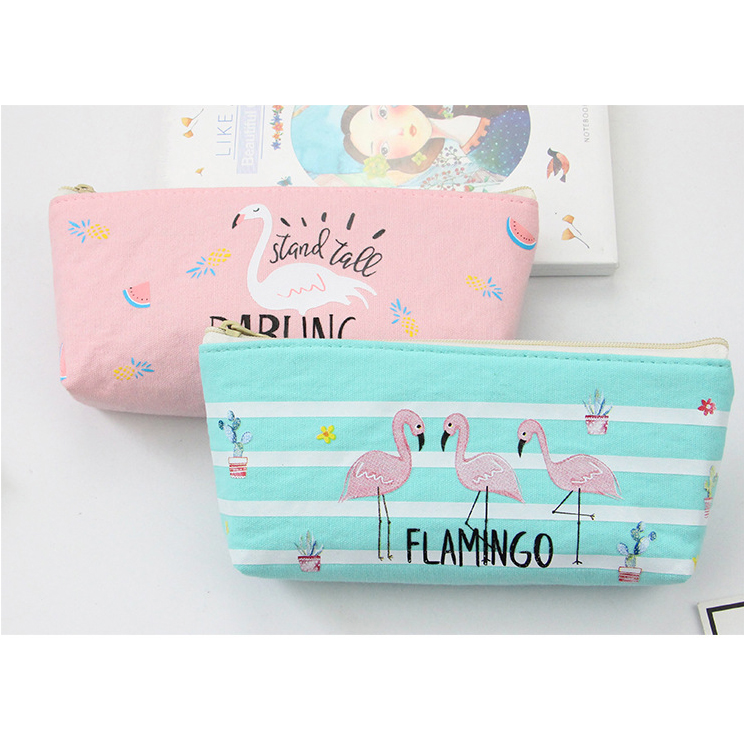 Flamingo Wild Animals Canvas Cute Pencil Cases Cosmetics Make Up Bags Pen Pouches