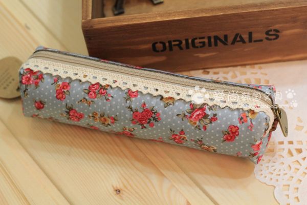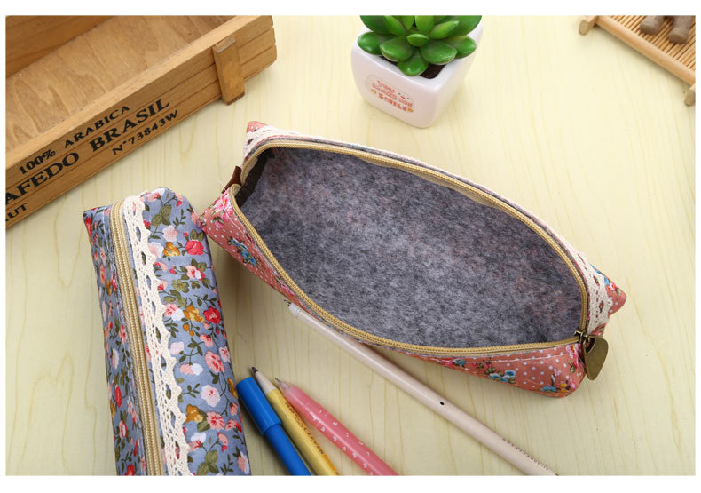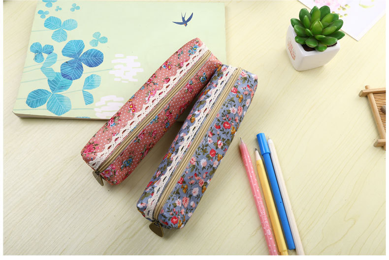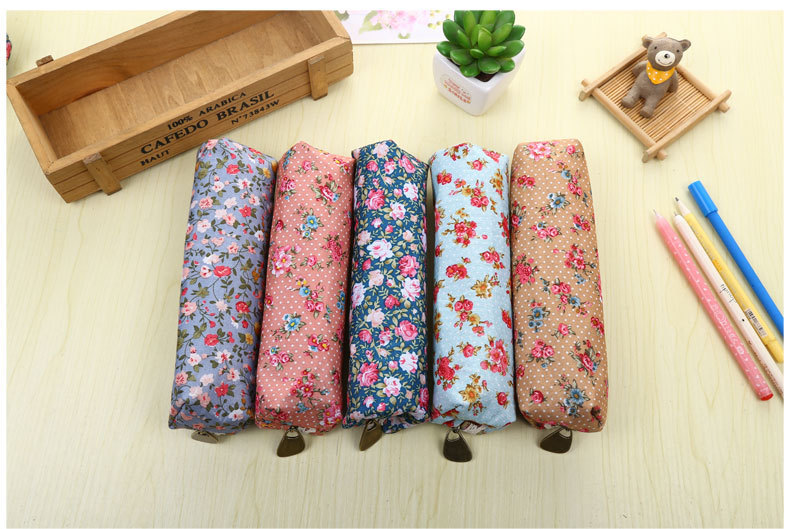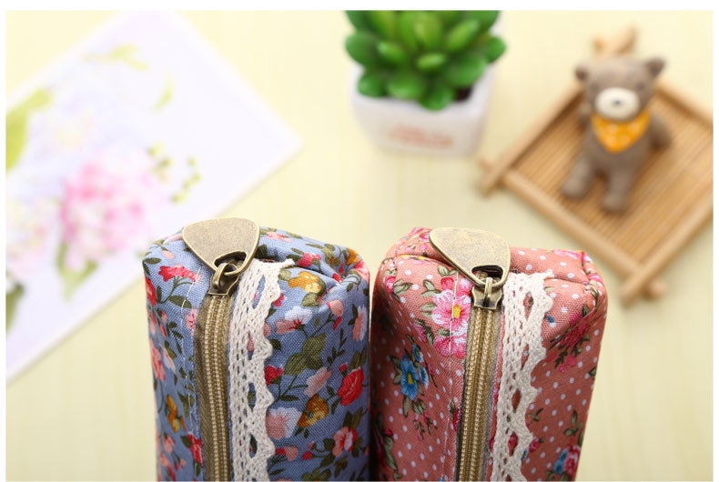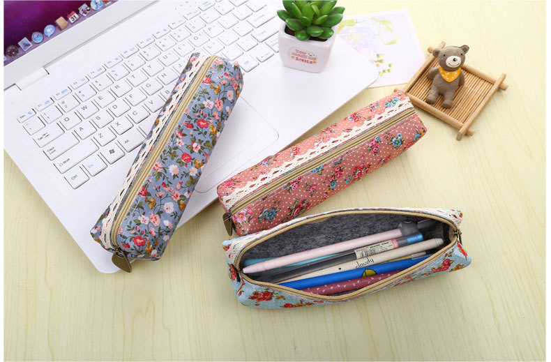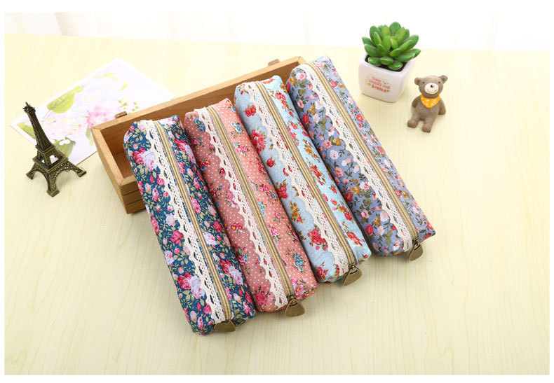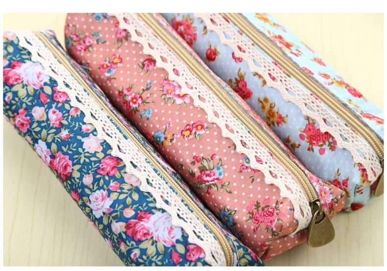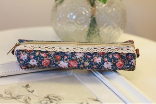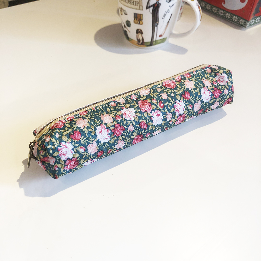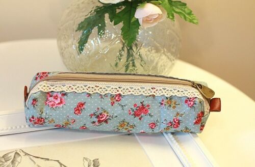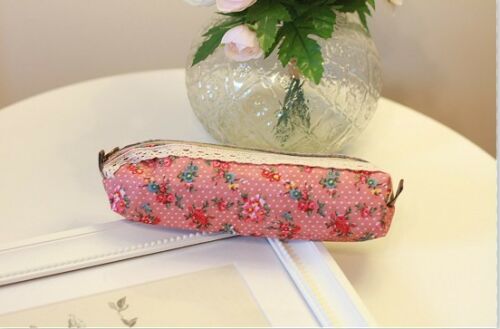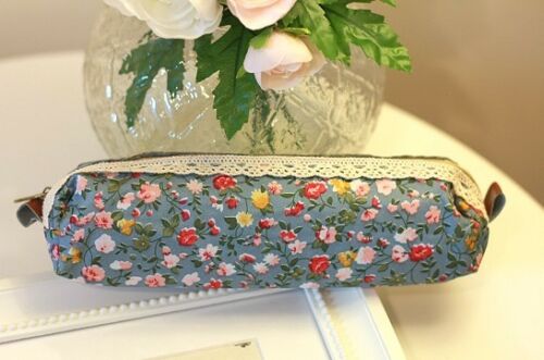 Floral Flowers Patterned Fabric Pencil Case Cosmetics Make Up Bag Pen Pouches