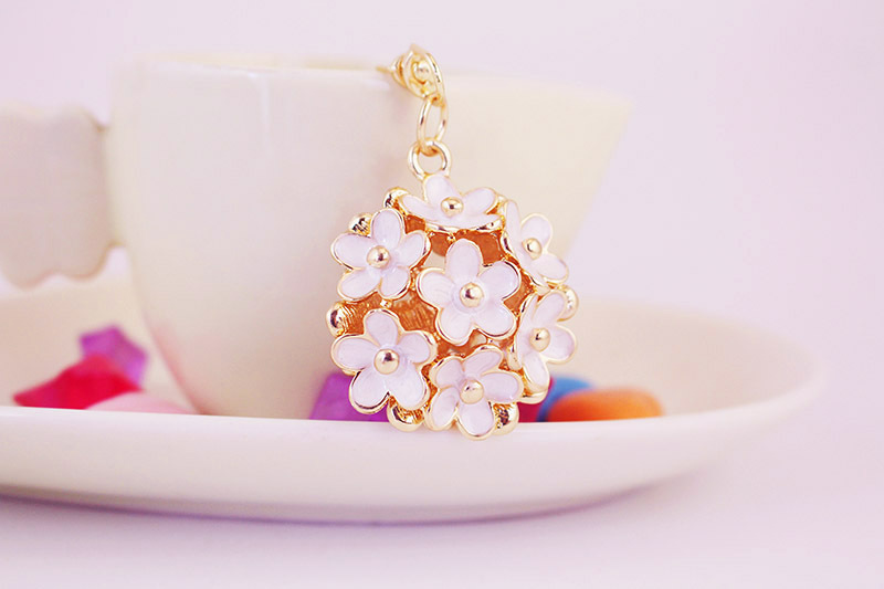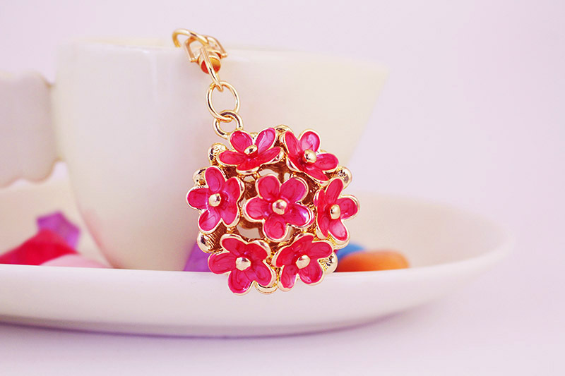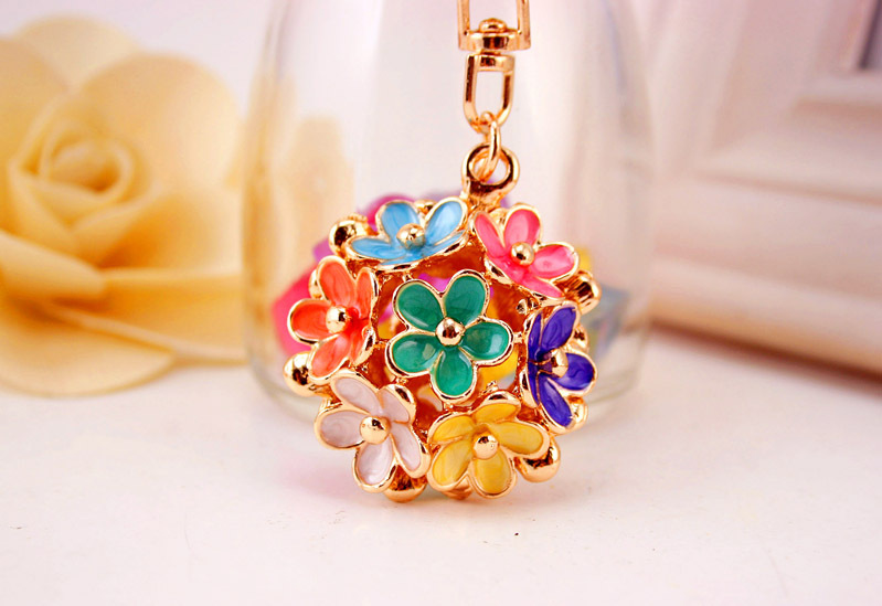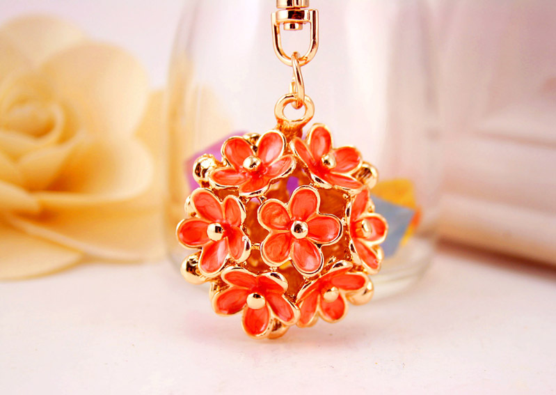 Details:Flower Ball Cherry Blossom Flowers Bag Charms Handbag Women Keyrings Pendant